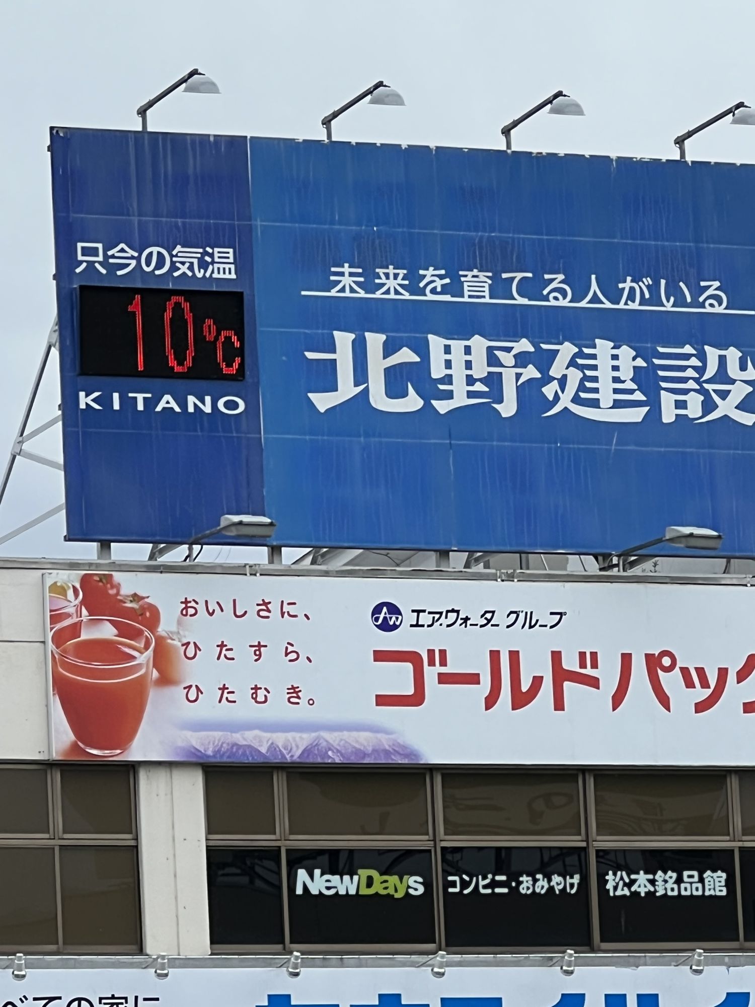 4月18日 (曇り)最高気温14.7℃ 松本駅の温度計 体感温度はとても寒く感じました。