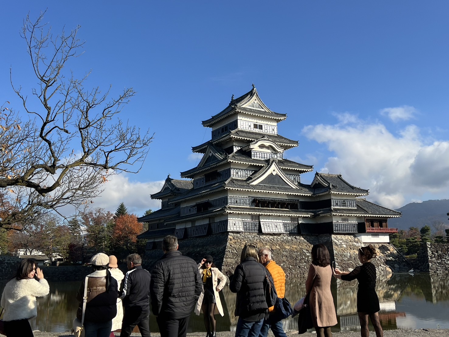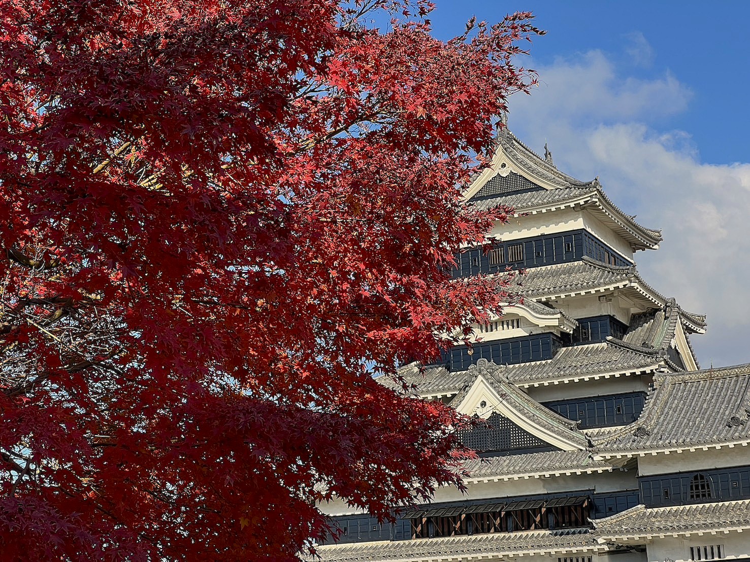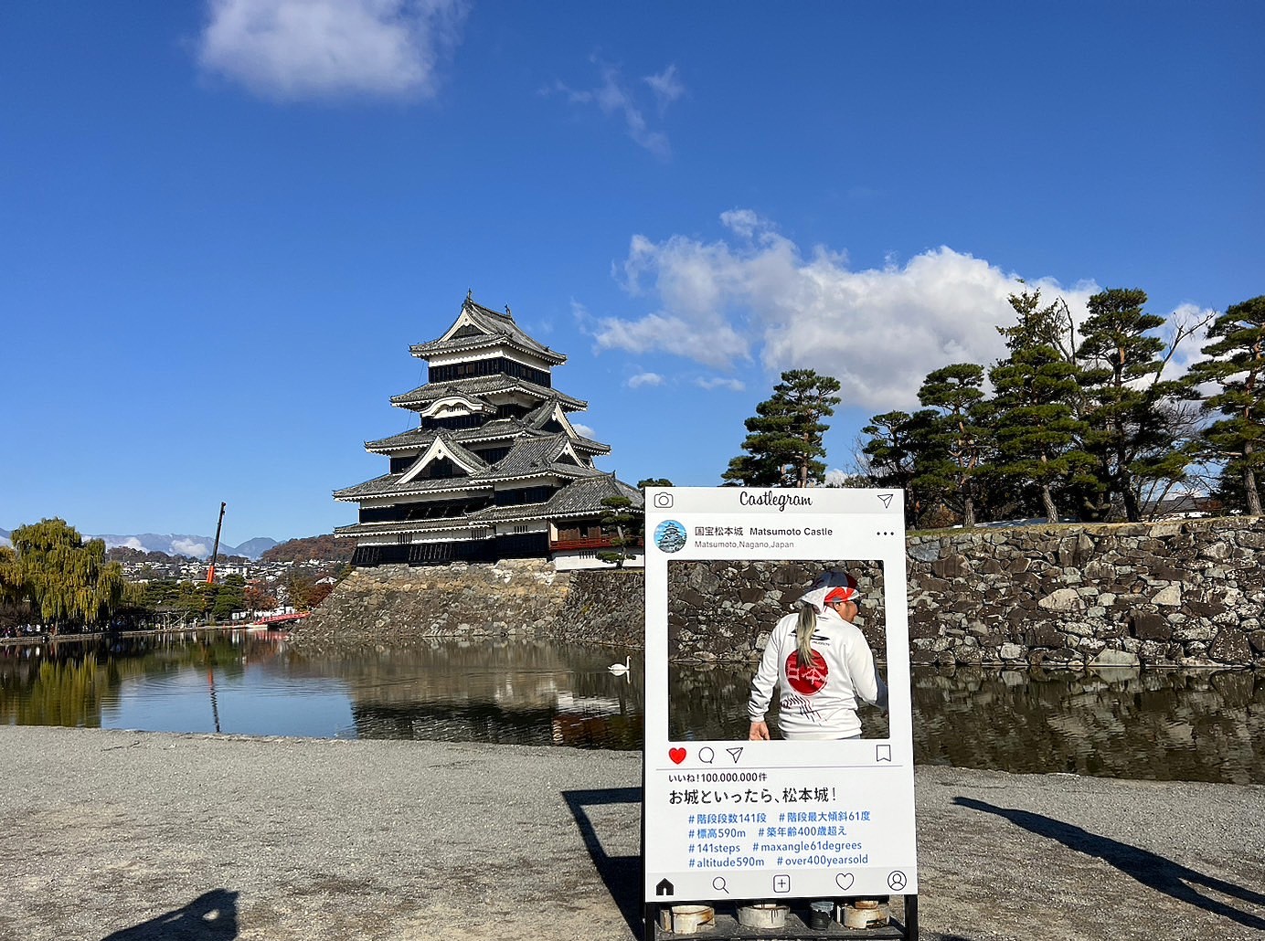 晩秋の松本城 紅葉 国宝松本城 ビューポイント 松本さんぽ 2024.11.21 ♥20 11月21日晴れ 今週に入り気温が10度ほど下がり肌寒い日が続いていました。 今日は久しぶりに晴れ渡り、山も綺麗に見えました。 松本城 久しぶりに望む北アルプスと松本城 晴れの日 朝から大勢の外国人観光客が松本城を楽しんでいました。 外国人観光客 今日松本城を訪れた人たちは、この美しい景色を見れてラッキーだったと思います。 内堀 映えスポット 「お城と言った、松本城!」外国人観光客が順番に写真を撮っていました。 フォトフレーム Tweet