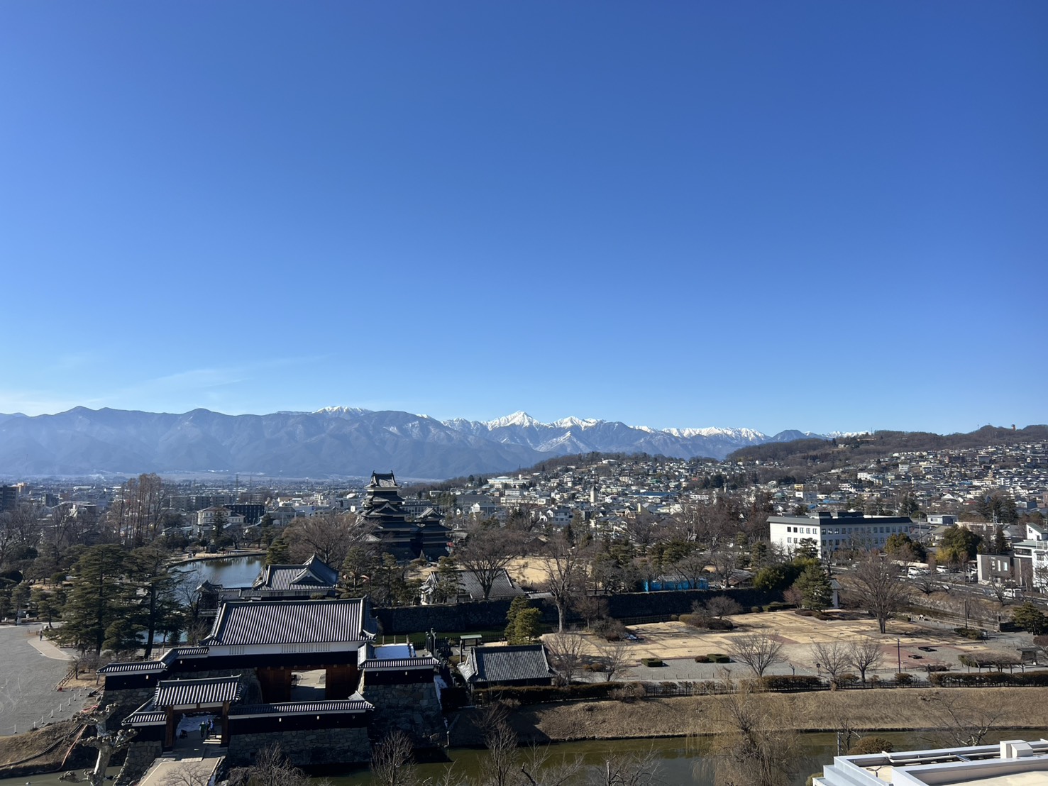 暖かい立春 松本市役所本庁舎から眺める展望 国宝松本城 ビューポイント 松本さんぽ 2026.2.5 ♥8 立春の2月4日 快晴で気温8℃ほどの暖かく穏やかな1日 松本市役所本庁舎の展望室に行きました 5階までエレベーターに乗りそこから階段を昇ります。 松本市役所 素晴らしい展望が広がっていました。 東の展望 東 西の山並み 常念岳と槍ヶ岳も見えます。 常念岳と槍ヶ岳 乗鞍岳も美しい 乗鞍岳 南東には弘法山も見えます。 南東 旧博物館跡地と外堀の修復工事をしているところが見えます。 旧博物館跡 次から次に人が昇ってきました。 展望室 今日2月5日も暖かい1日になりそうです 西 Tweet