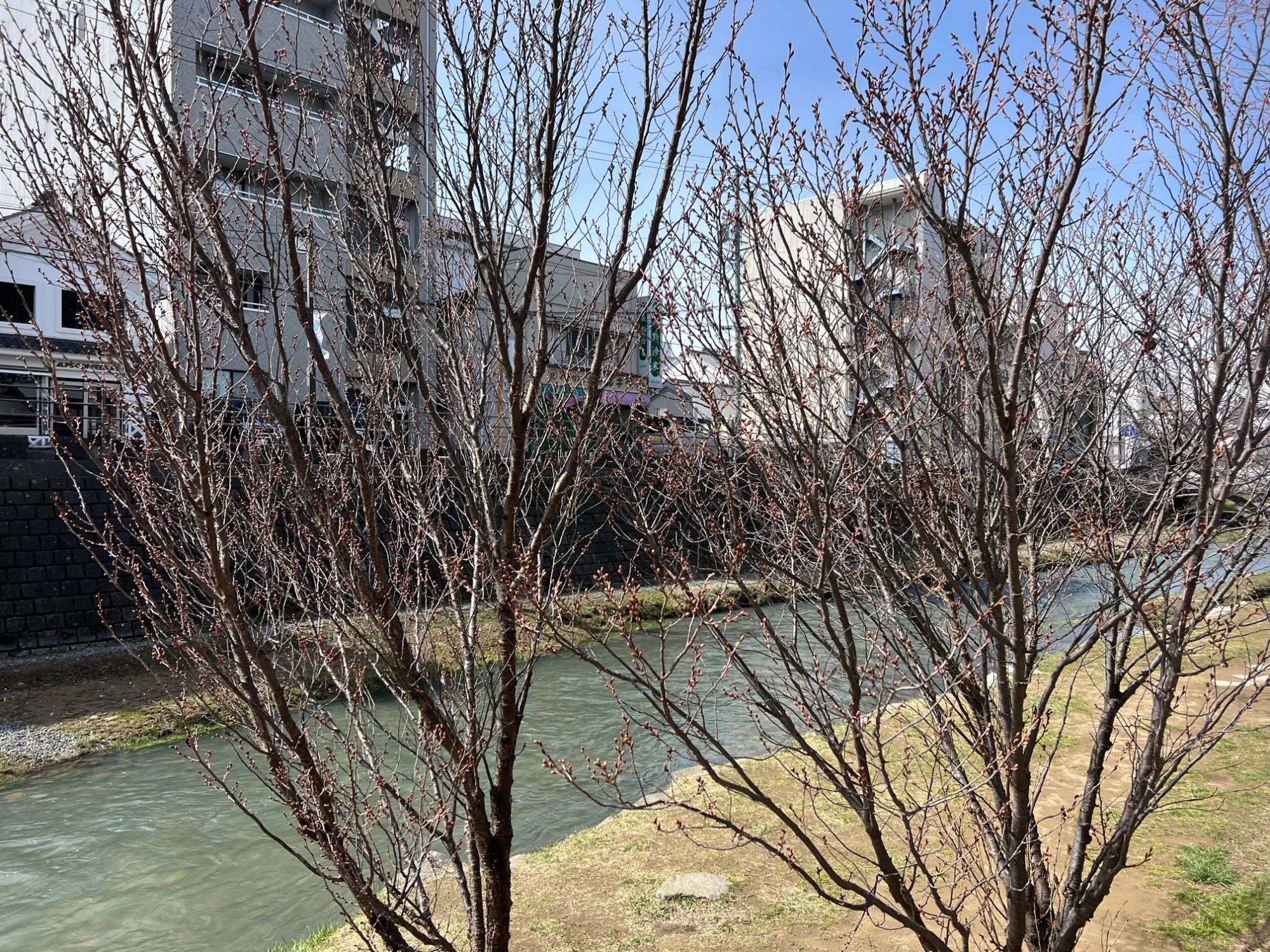 松本まちなかの早咲き桜はまだつぼみです。 桜 女鳥羽川 市街地 桜情報 松本さんぽ 花情報 2024.3.28 ♥17 3月28日(木)曇り 朝9時ごろ まちなかで1番早く咲くと言われている辰巳の庭の桜を見て来ました。 辰巳の庭 コヒガンサクラのつぼみは、まだ堅そうでした。 コヒガンサクラ 女鳥羽川の大山桜の様子も見てみました。 大山桜 つぼみが少し色づき始めていました。 大山桜 ソメイヨシノは、まだまだのようです。 ソメイヨシノ 天気予報では、今夜から朝の朝まで雨になるそうです。その後晴れて気温が上がれば、開花は進むかもしれません。 Tweet