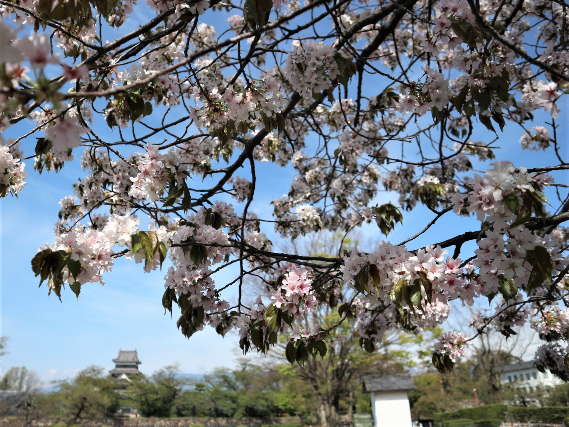 松本城 八重桜が映える空 桜情報 国宝松本城 ビューポイント 松本さんぽ 花情報 2022.4.23 ♥24 4月23日(土)朝 松本城に寄って見るとなんと!八重桜が綺麗に咲いてました。 外堀 外堀桜並木は新緑になりましたが、1本だけ八重桜 空も綺麗 外堀 二の丸御殿跡の枝垂れ桜 枝垂れ桜 八重桜 八重桜二の丸御殿跡 二の丸御殿跡 空も綺麗 二の丸御殿跡空 国宝松本城 松本城 今日も松本城は、とても美しいです。 初めて松本城に来たと思われる家族連れのお父さんが、感動の声「すごい!すごい!」連発していました。 「こんな日にここに来れたあなたたちは、とても運がいいんですよ。去年ブラタモリでタモリさんが松本城に来た時は、山は雲の中でしたから」 私は心の中で呟いたのでした。 松本城公園 Tweet