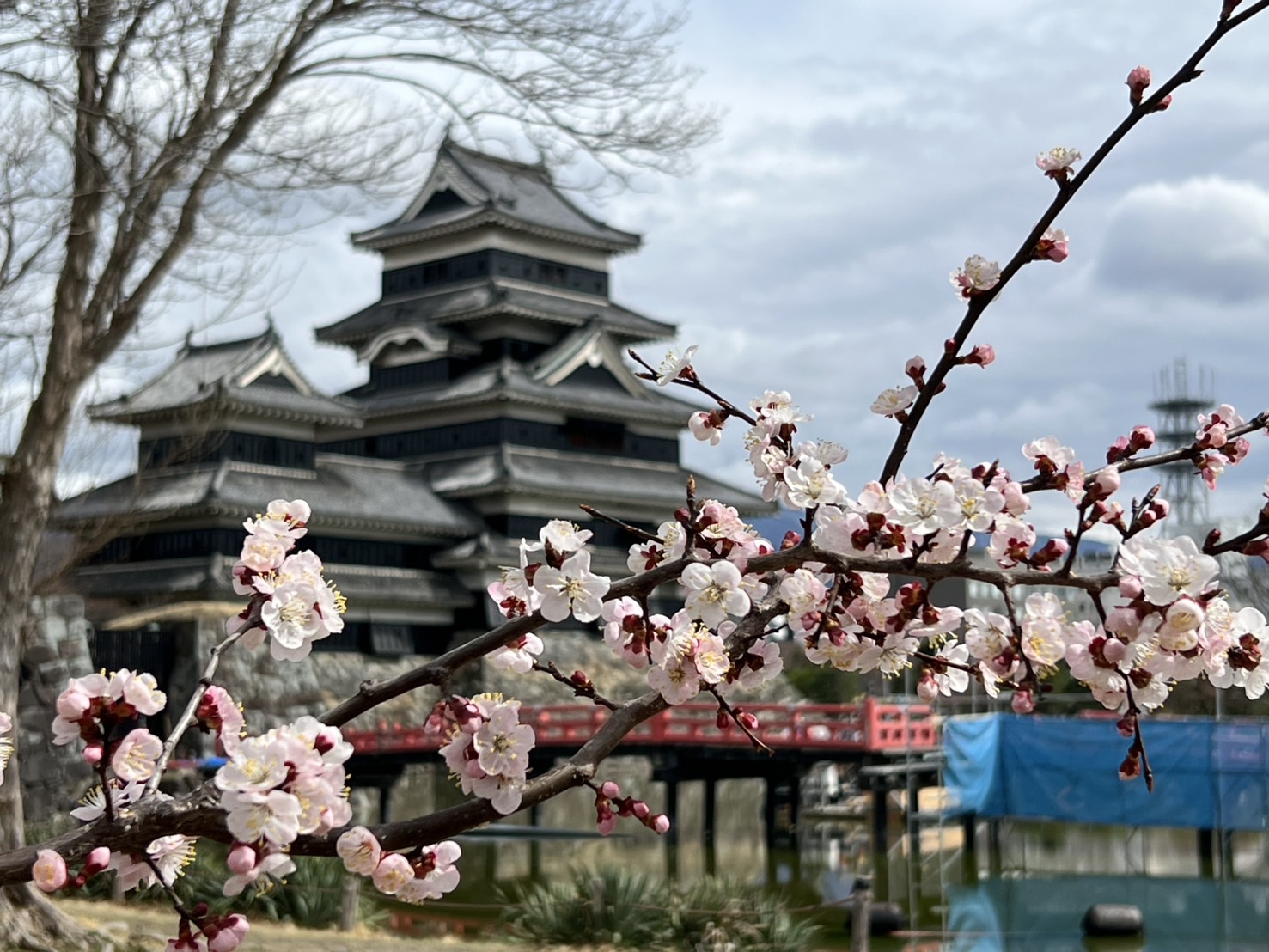 松本城公園 梅は満開 桜はまだまだ 4月2日