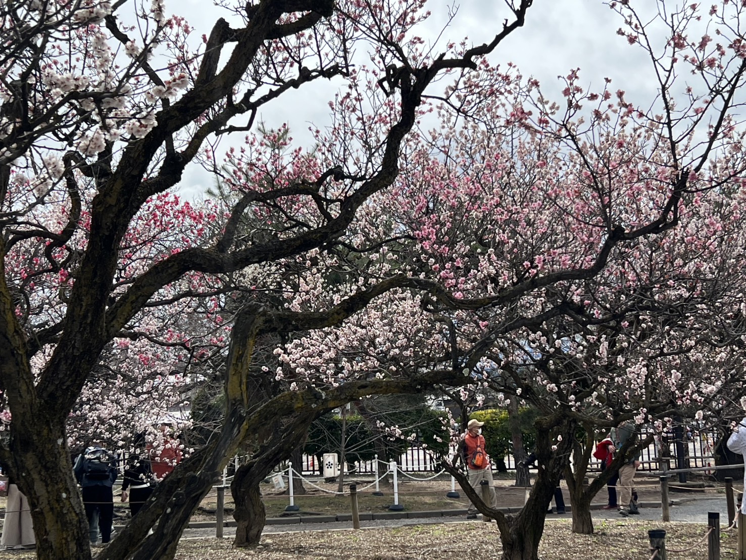 大勢の外国人観光客が梅をバックに写真を撮り楽しんでいました。