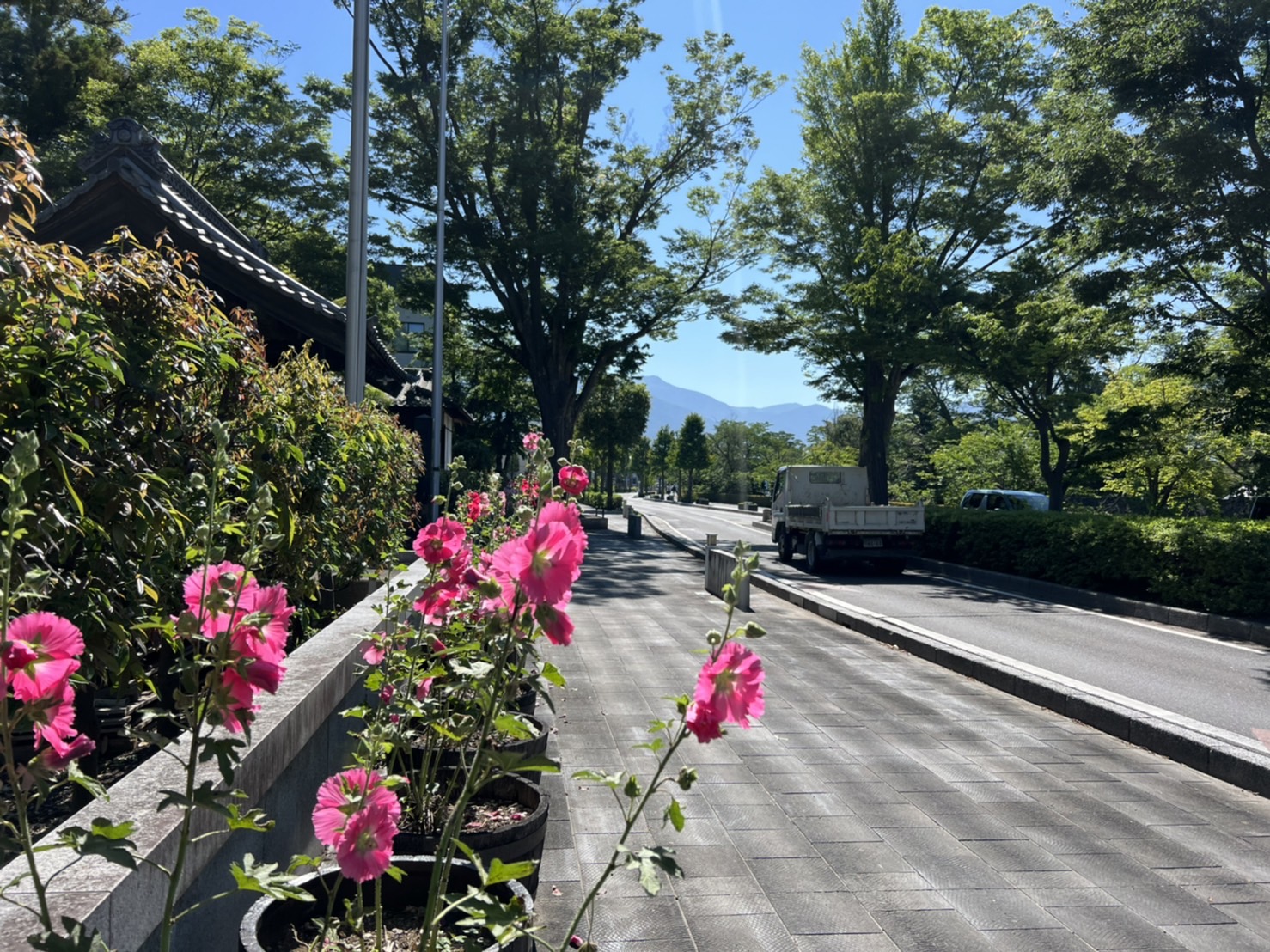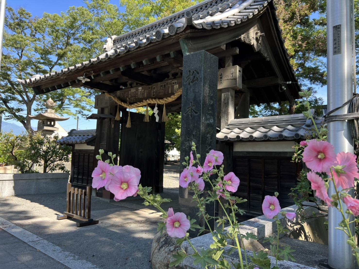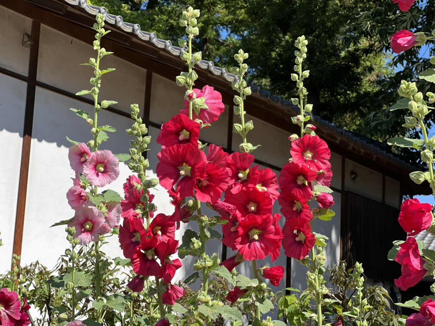 国宝松本城の北にある「松本神社」6月から咲き始める立葵(タチアオイ)は、季節を知らせる花として有名です。