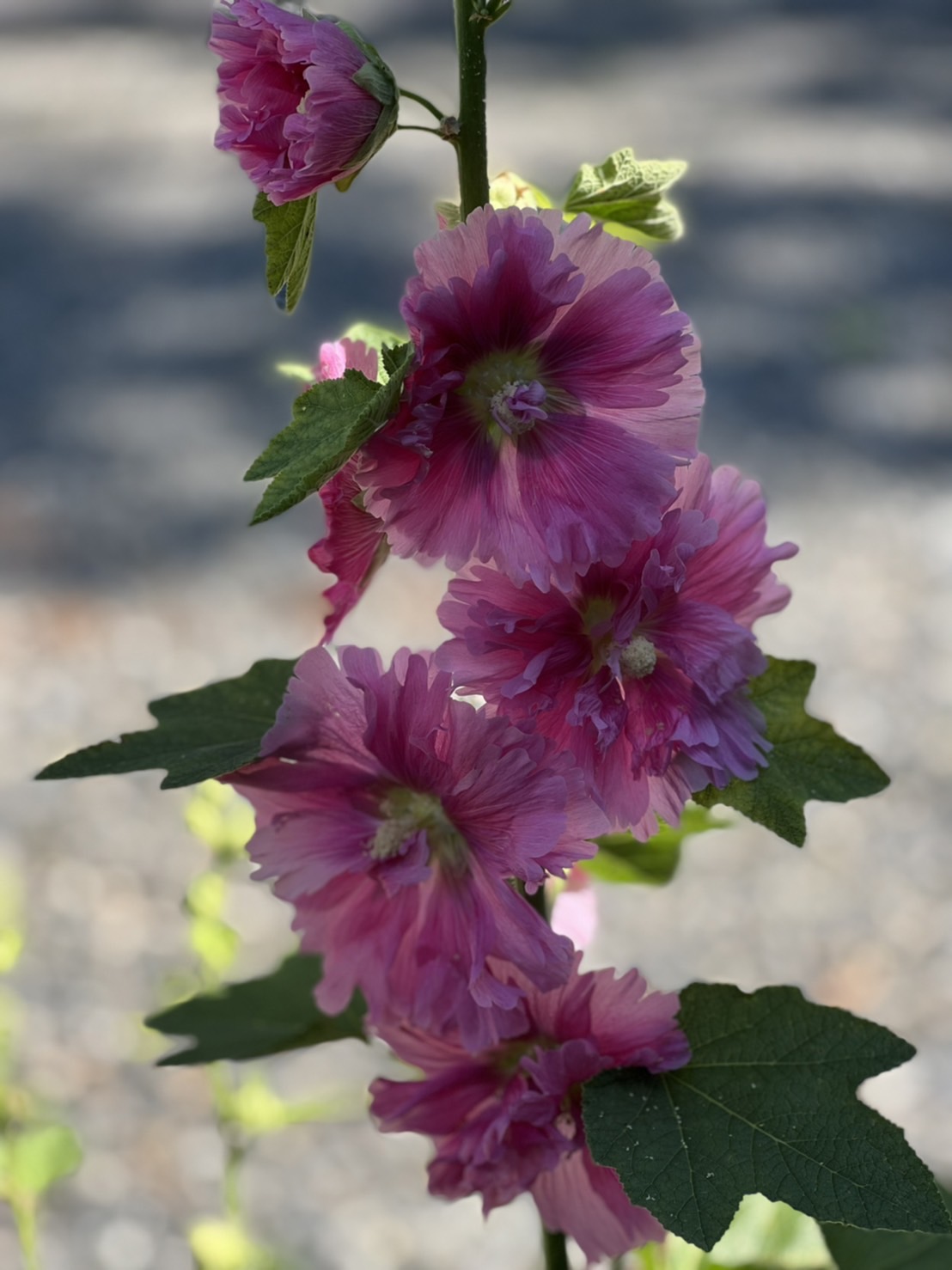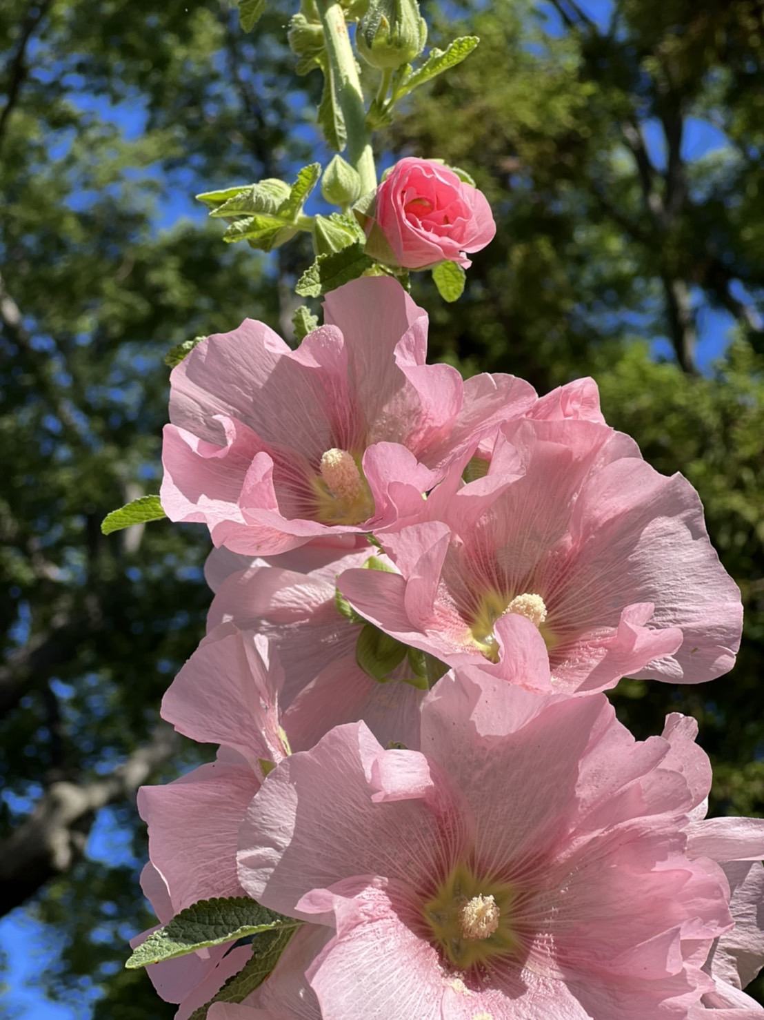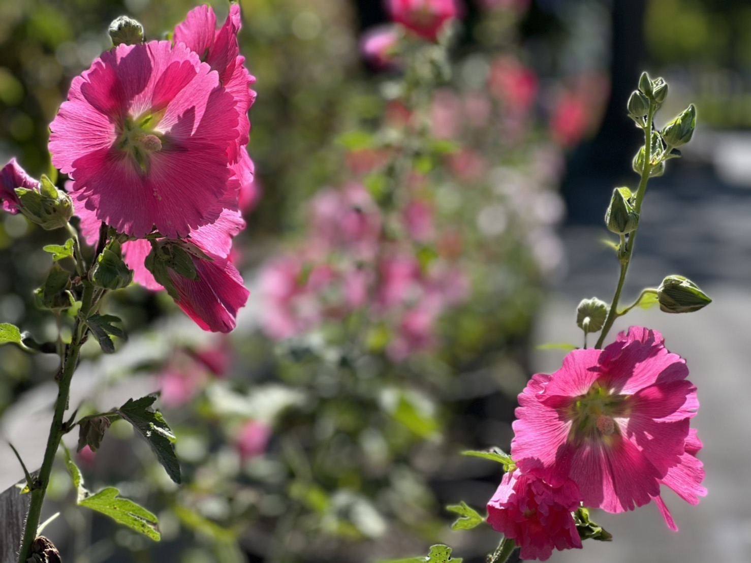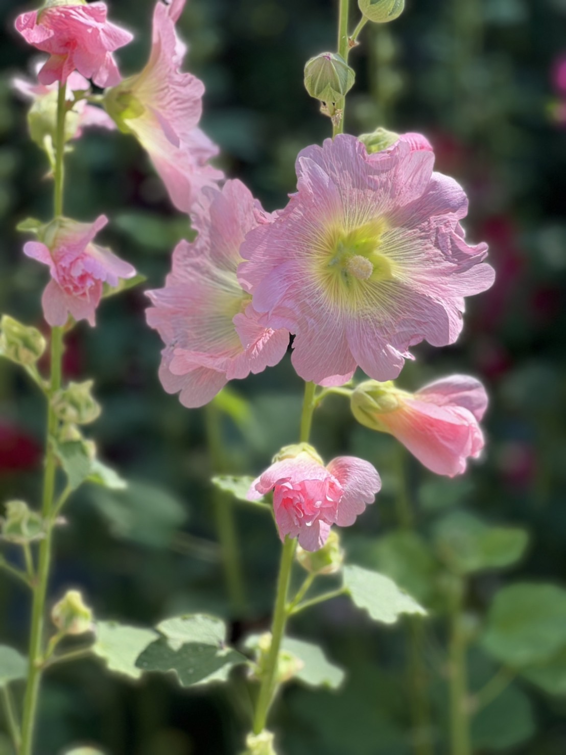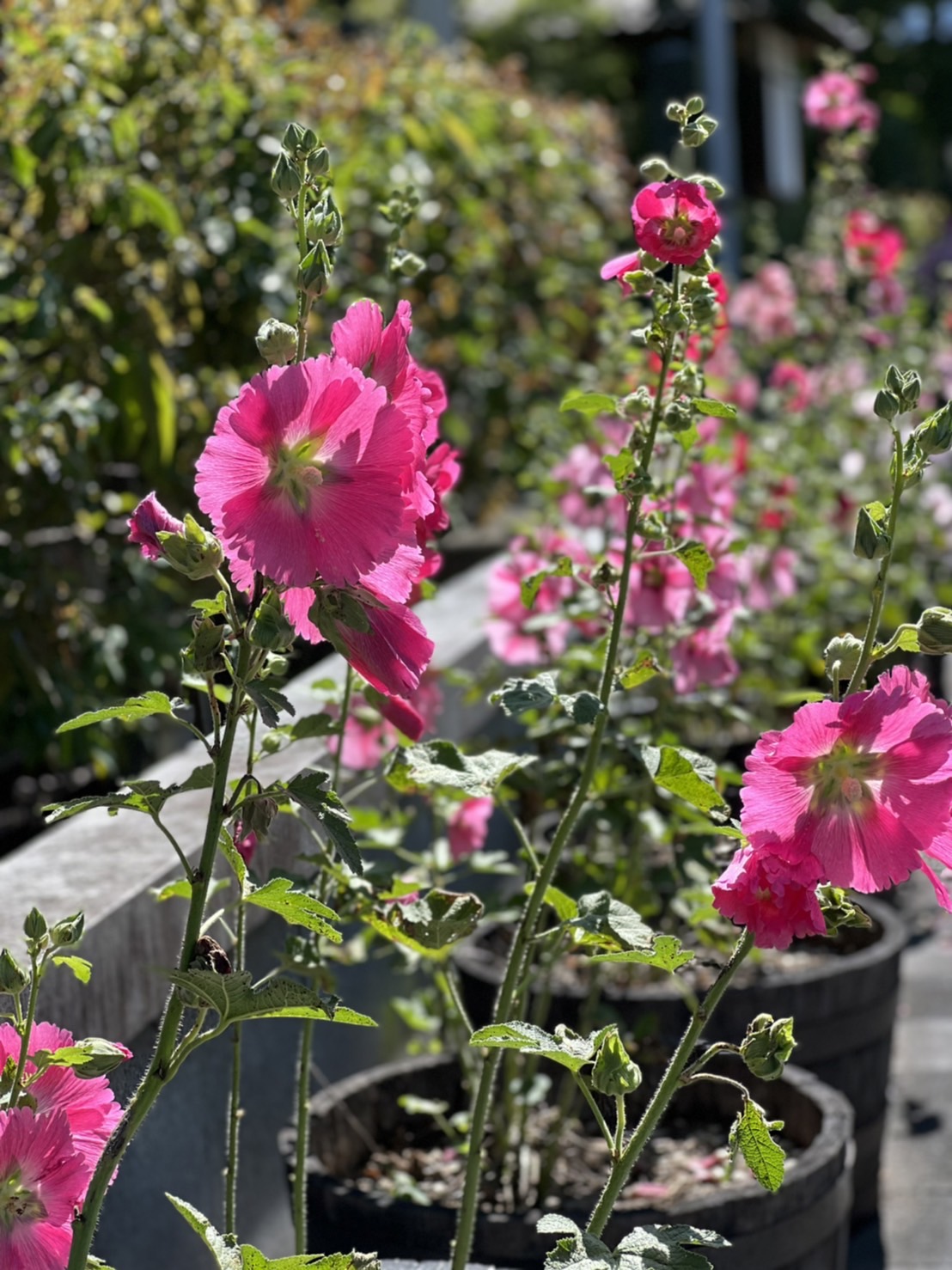 タチアオイは、下から順番に花が咲きます。1番上まで咲いたら梅雨が明けると言われています。