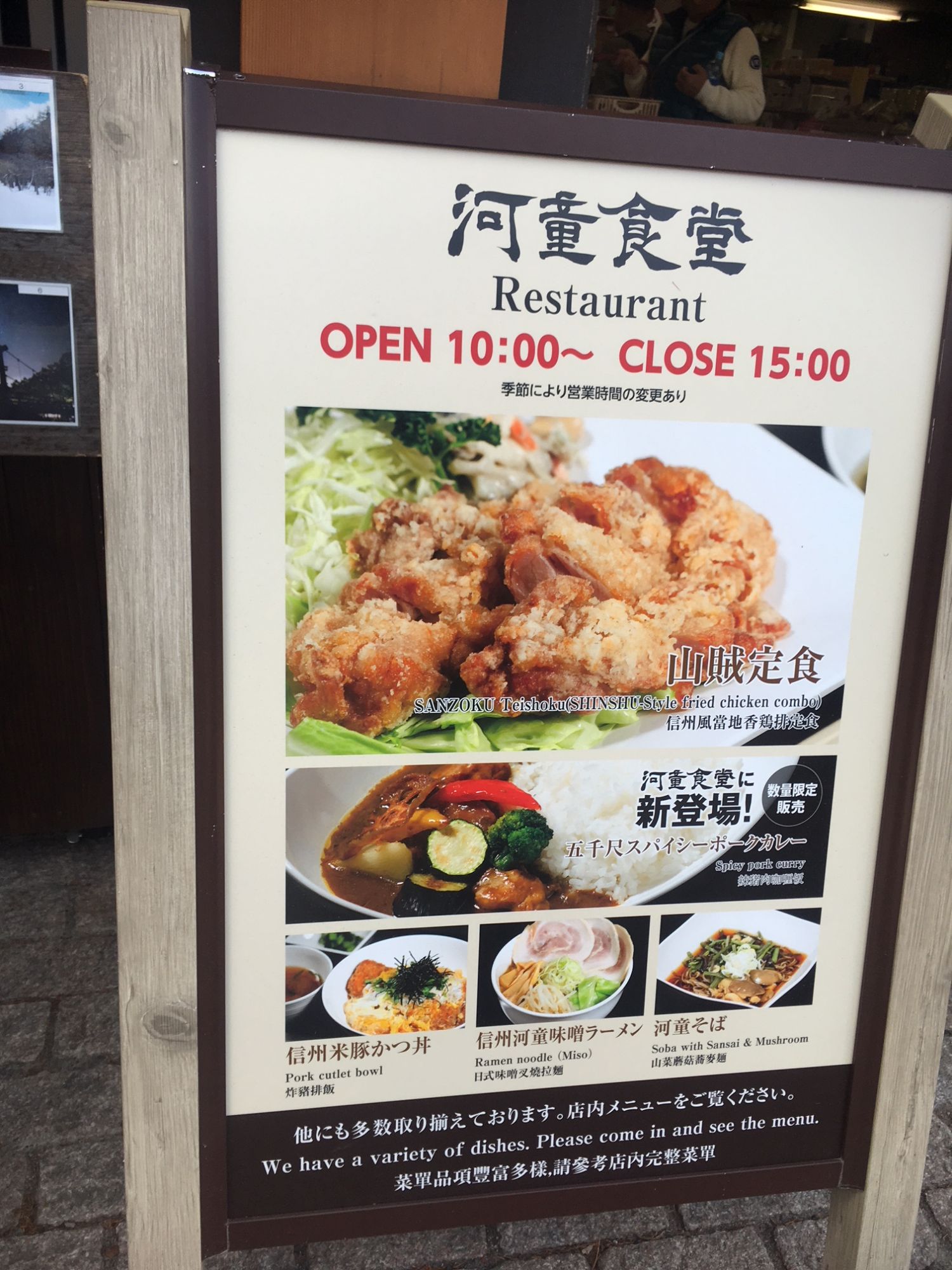 河童橋の案内看板には、英語名「kappa-bashi Bridge」