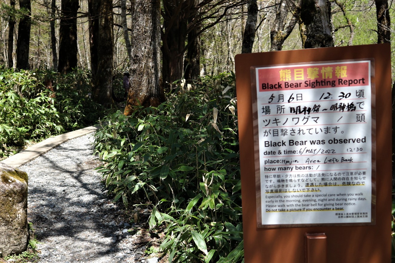上高地でも熊は生息しています。滅多に出会うことはありませんし、出来れば会いたくはありません。