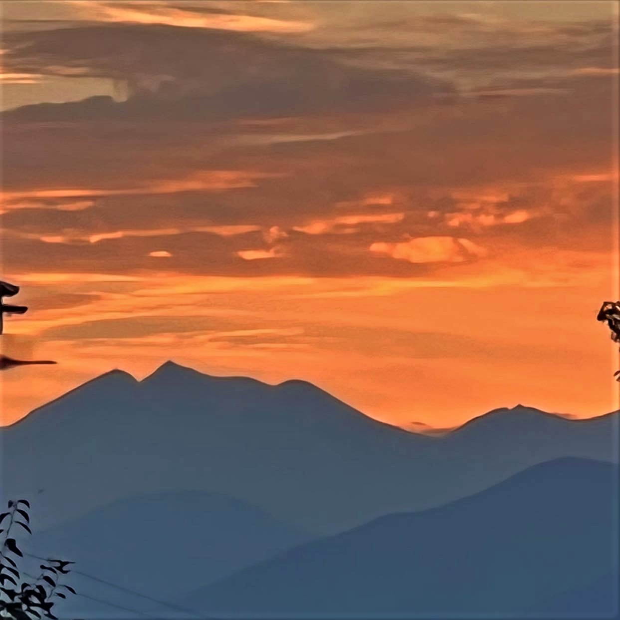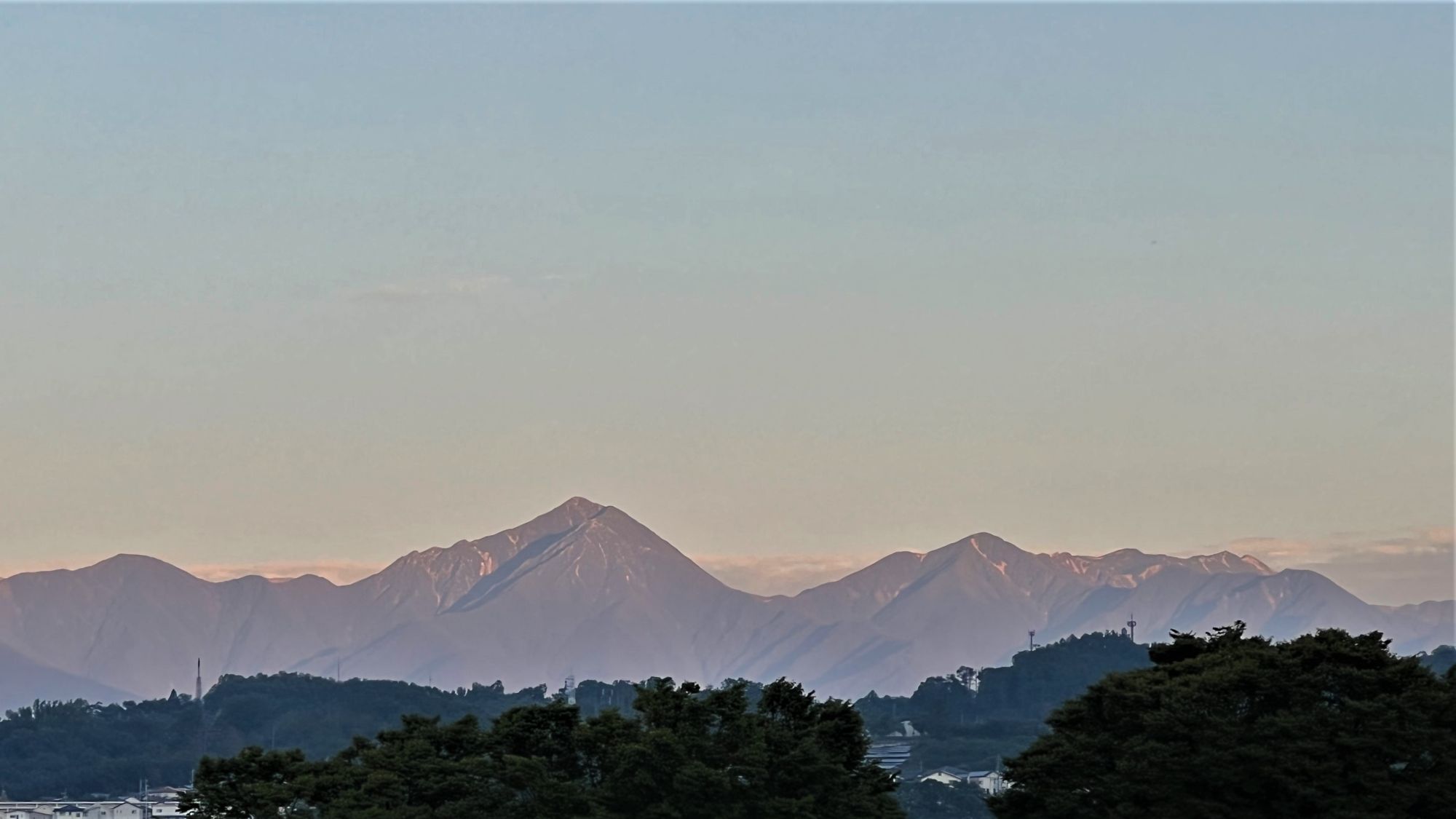 久しぶりに朝くっきりと北アルプスが臨めました。朝日を浴び始めた山並みです。