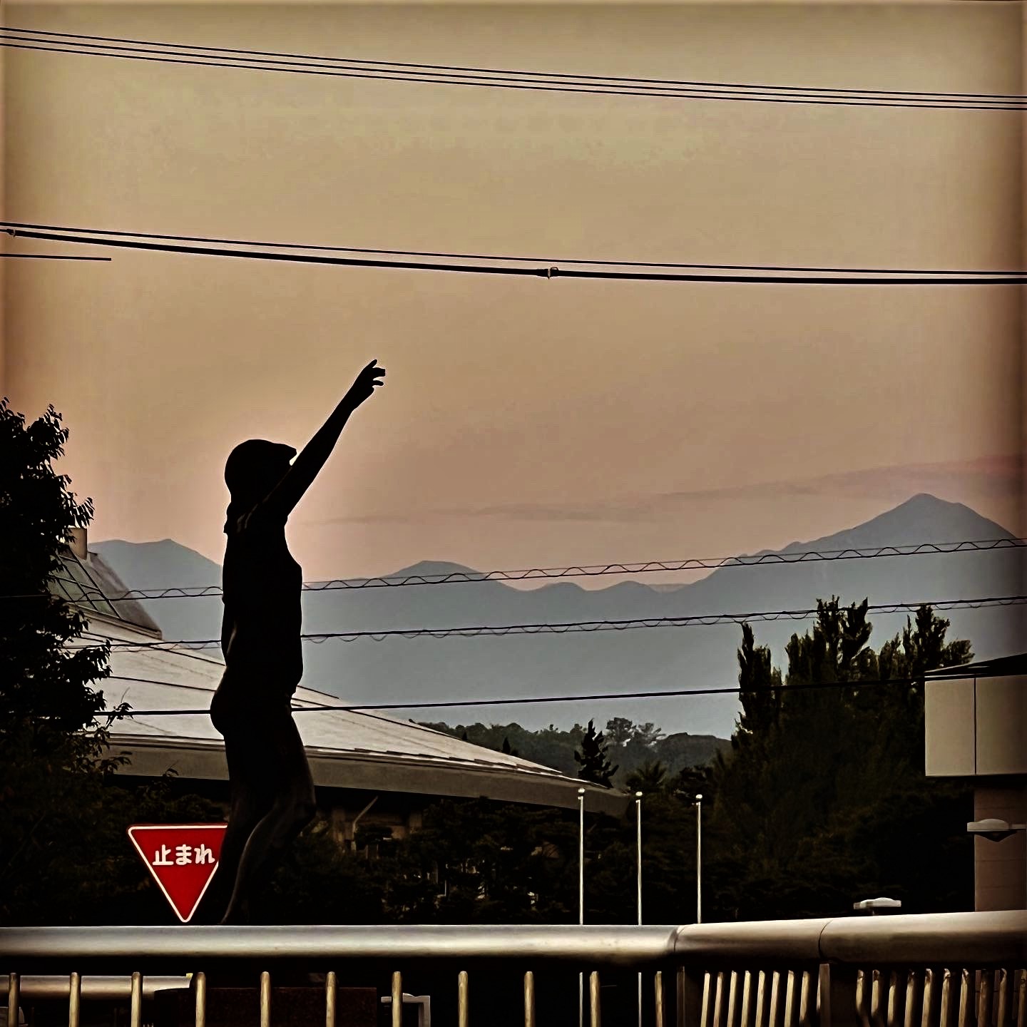 女鳥羽川スポーツ橋から 彫刻と常念岳 夜明け間近です。