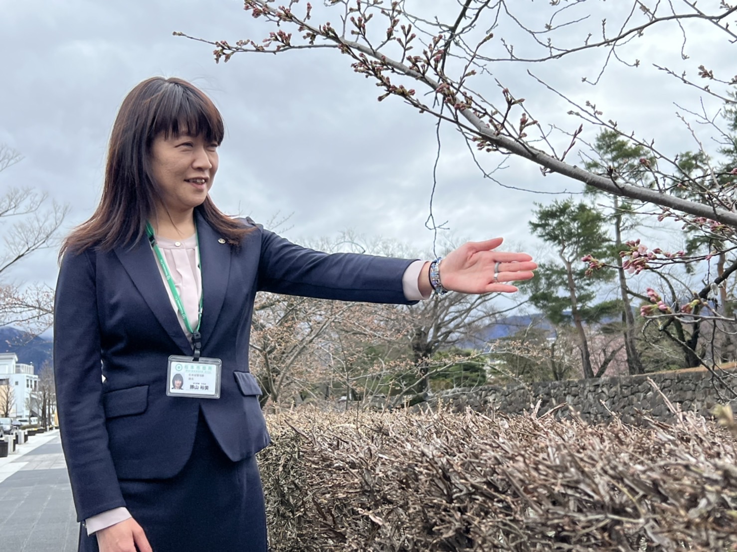 国宝松本城外堀北側の標本木その周辺の桜の開花が確認され、松本城管理課の勝山課長が手話を交えて開花を宣言しました。