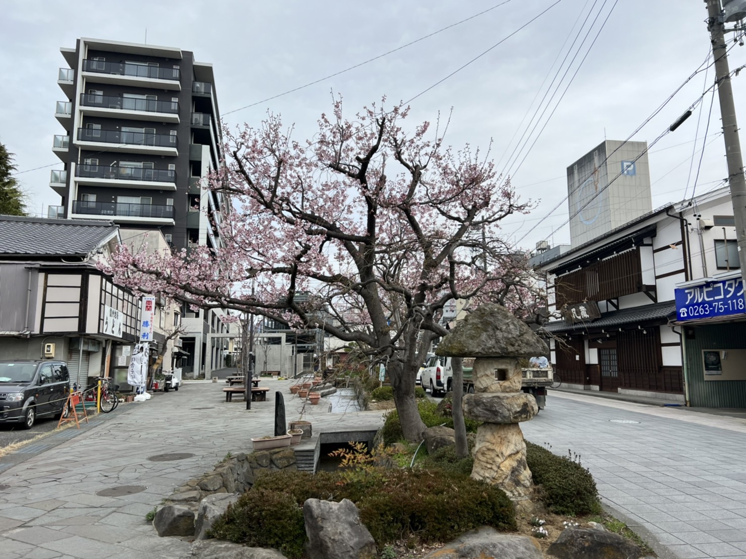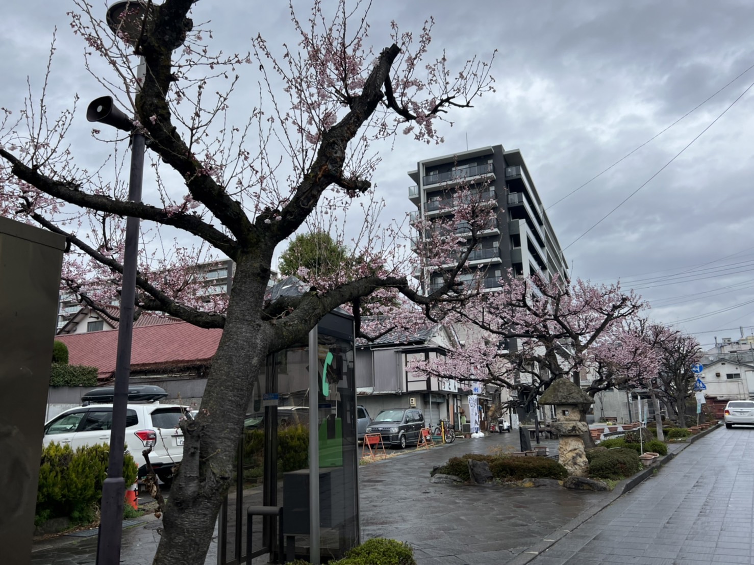 辰巳の庭にあるうどん屋勝利のお兄さんに尋ねたところ、火曜日くらいからほころび始め、昨日パッと咲いたそうです。