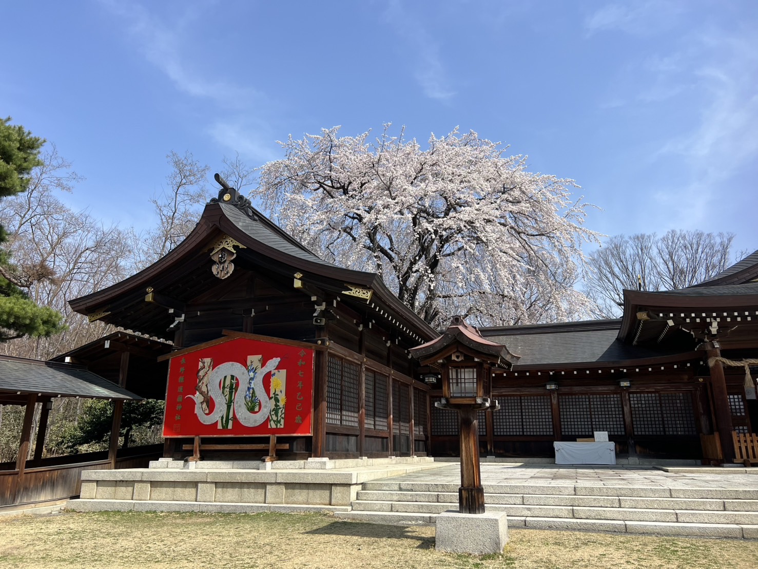 長野縣護国神社 枝垂桜見ごろ 4月8日 桜情報 神社・仏閣 松本さんぽ 花情報 2025.4.9 ♥12 長野縣護国神社 4月8日 朝9時半 長野縣護国神社 だあれもいない厳かな境内です。 護国神社 拝殿の裏にある枝垂桜が満開でした。 枝垂桜 干支の絵馬が鮮やかです。 枝垂桜と絵馬 境内には沢山の桜の木がありますが、まだつぼみの木が沢山あります。 護国神社境内 早咲きの枝垂桜は満開でしたが、遅く咲く桜があるのでしばらく楽しめると思います。 Tweet