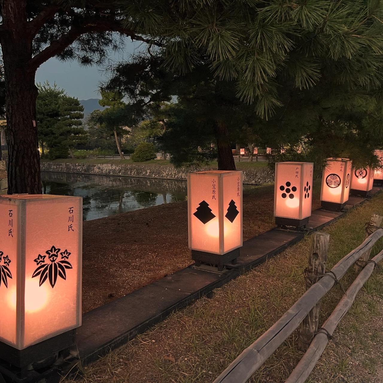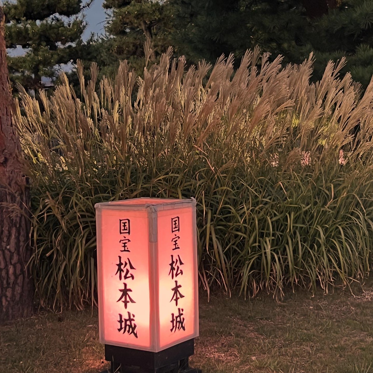 公園内の行燈の灯りが灯っていました。
