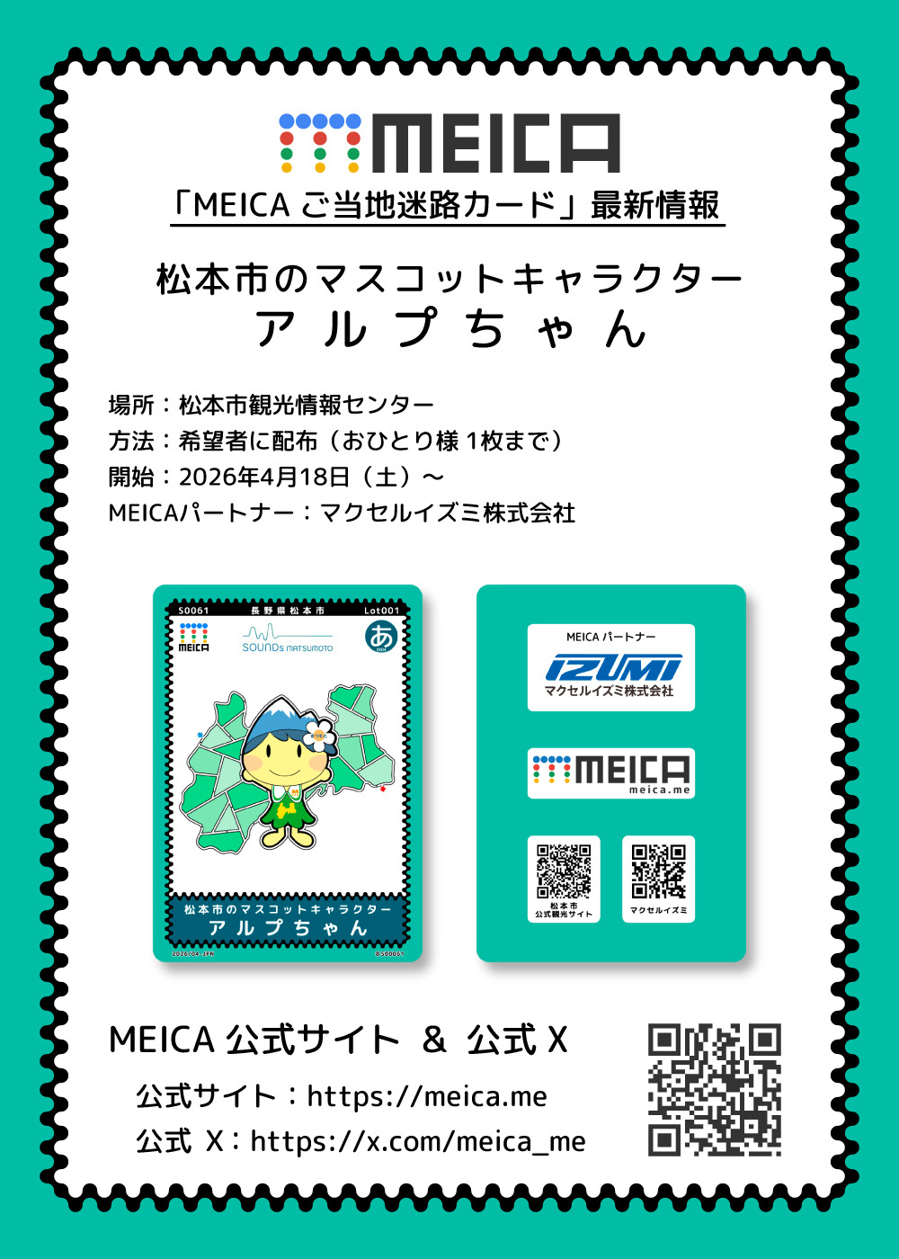 ご当地迷路カード「MEICA(メイカ)」の松本市「アルプちゃん」版が完成しました。