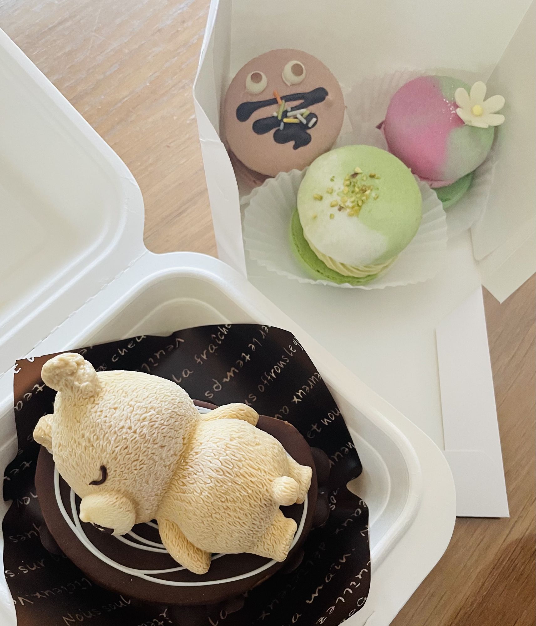 На самом деле заведение вполне себе японское, базирующиеся в префектуре Сайтама. Предприимчивые кондитеры переняли опыт корейских мастеров и решили предложить японским сластёнам декорированные макарунсы и кавайные мусовые пирожные.