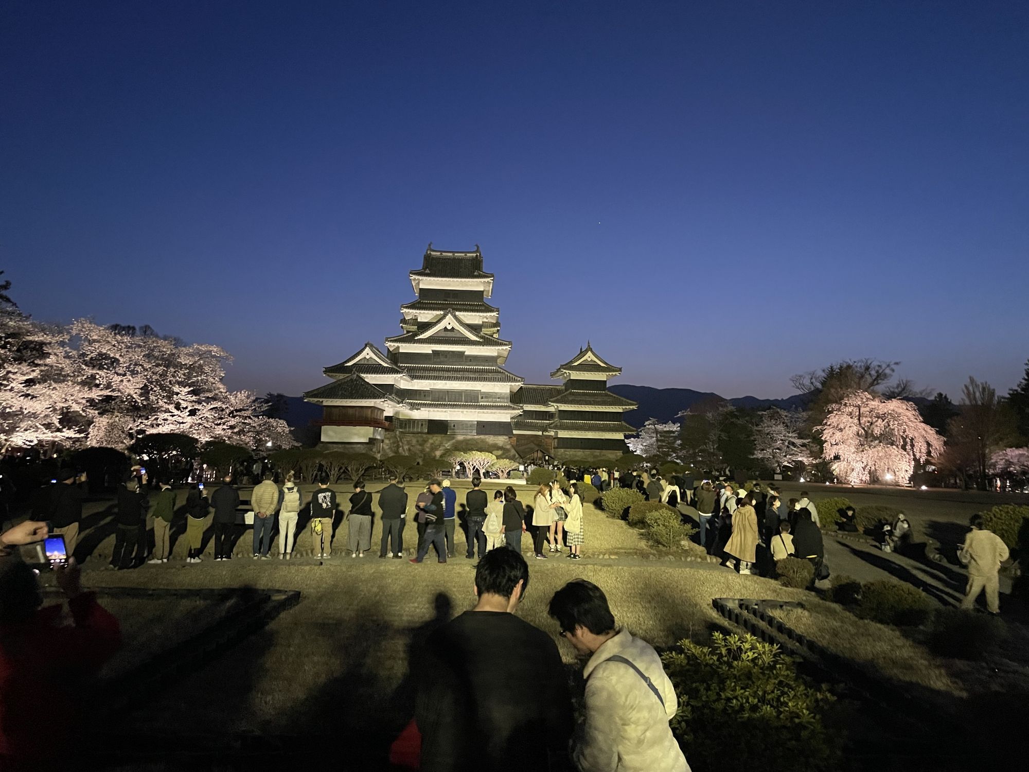 Традиционно, через 3 дня после того как откроется первый бутон сакуры в призамковом саду, на неделю открываются ворота и все желающие могут попасть во внутренний двор. В это время включается подсветка и старинный замок утопая в розовых облаках обретает сказочный вид.