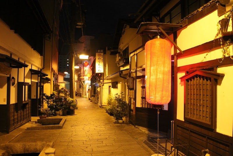 После захода солнца приятно погулять по старым улицам города, заглядывая в многочисленные бары-кафе, которые японцы называют «идзакая» (居酒屋 (いざかや)ーдословный перевод иероглифов выглядит как «место для остановки» и «саке»)
