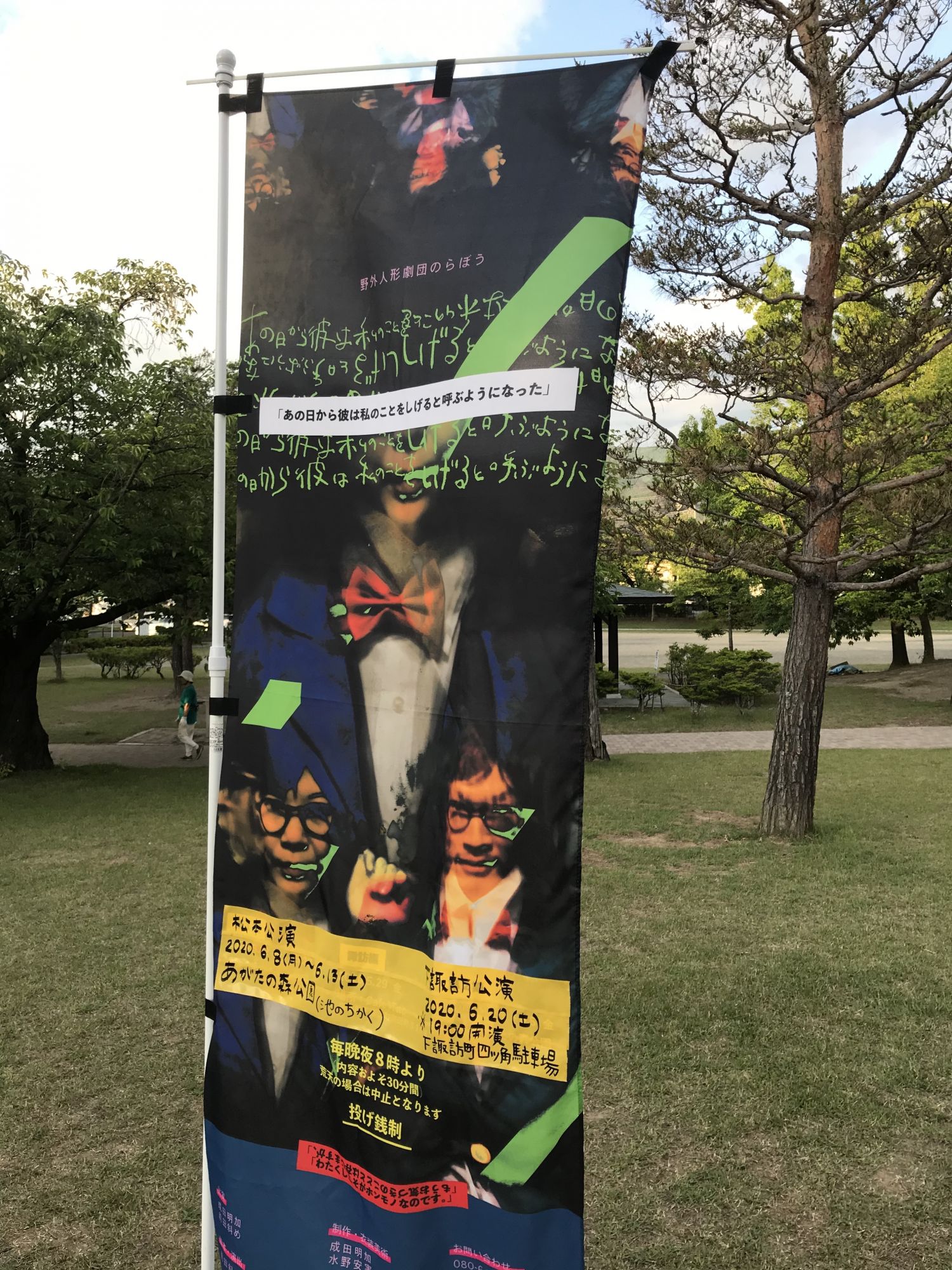 Начиная с сегодняшнего дня и до субботы включительно на одной из лужаек парка Агатано Мори каждый вечер с 20:00 будет проходить небольшая театральная постановка. В этот раз труппа «Норабоу» представляет на суд зрителей кукольную пьесу «С этого дня он стал звать меня Сигеру»