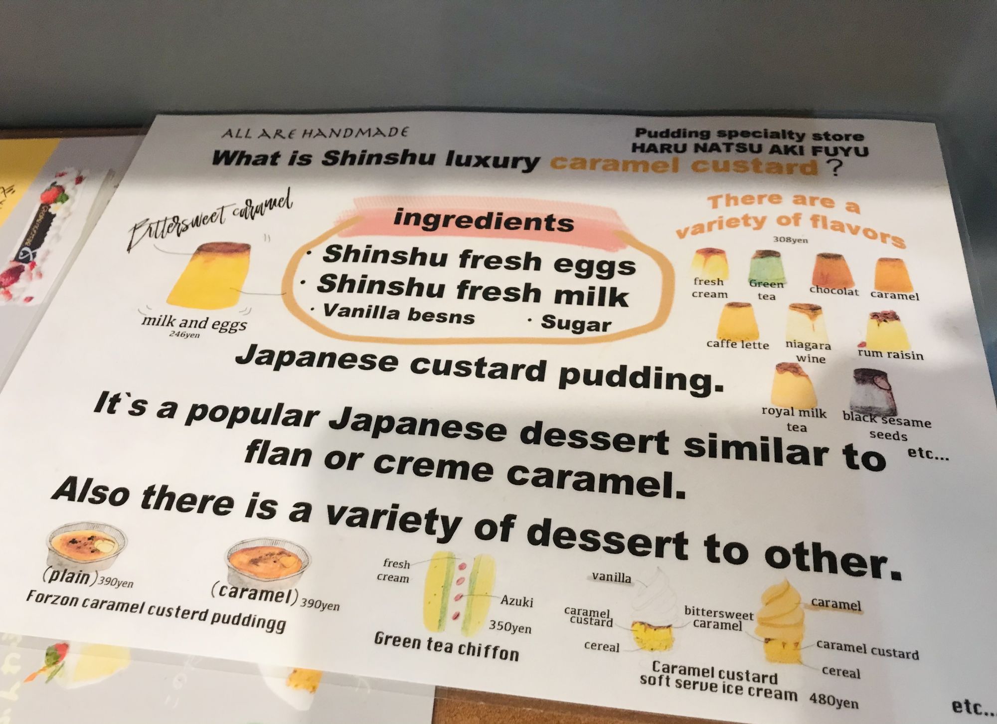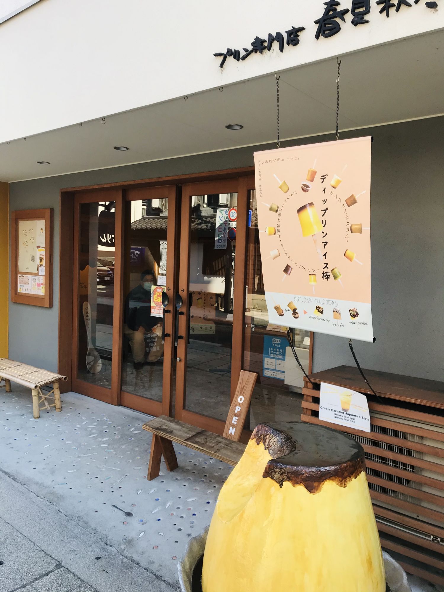 Кафе на улице Накамати носит название «Весна,лето,осень,зима» , с намеком на то, что пудинг можно есть круглогодично.