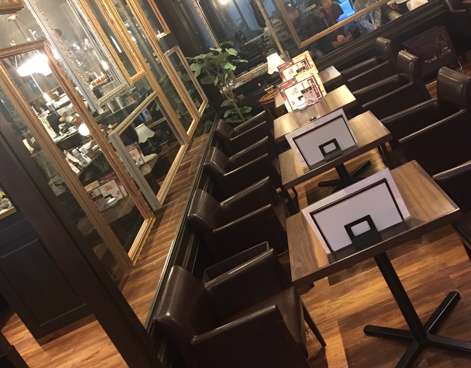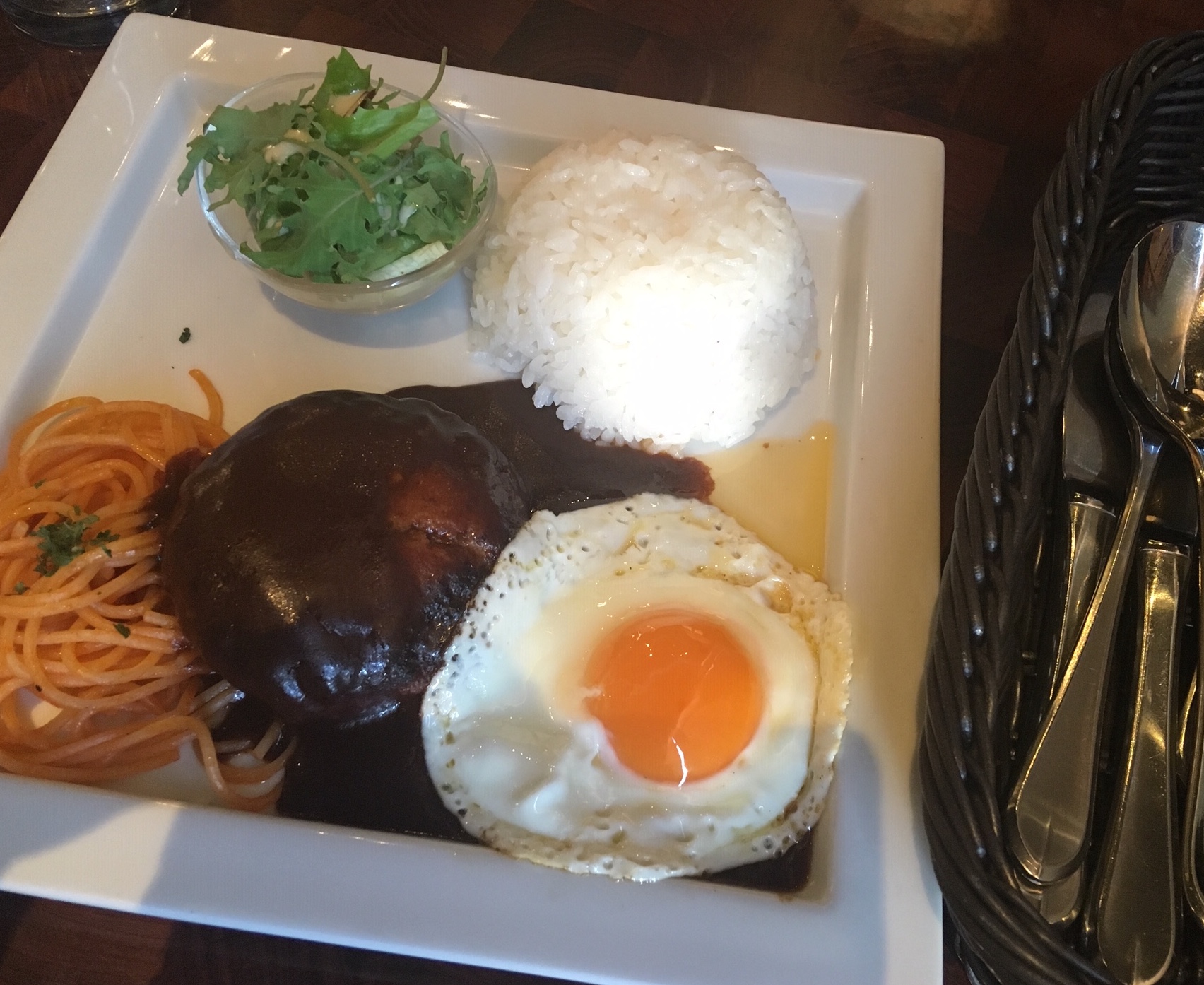 На первом этаже зелёного павильона располагаются множество ресторанов на любой вкус. Любителям кофе рекомендую уютное кафе, расположенное прямо у выхода, под названием «Хосино кофе» . Меню состоит из «европейских блюд» — европейских в кавычках, потому как ни где в Европе мне не встречался «Рис в омлете», который в Японии считается французским блюдом. Впрочем, это довольно вкусно.