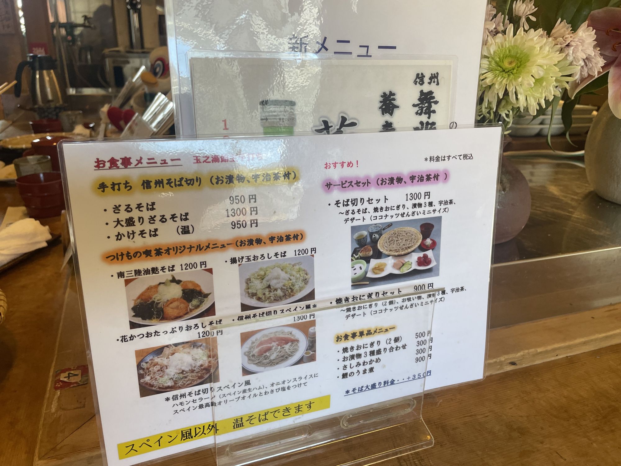 Нагано славится своей собой, и «Цукемоно Кисатен» поддерживает эту традицию, предлагая посетителям лапшу из высококачественной гречневой муки. Ароматная, с лёгкой ореховой ноткой, соба здесь подаётся как в горячем бульоне, так и в холодном варианте с традиционными соусами и гарнирами.