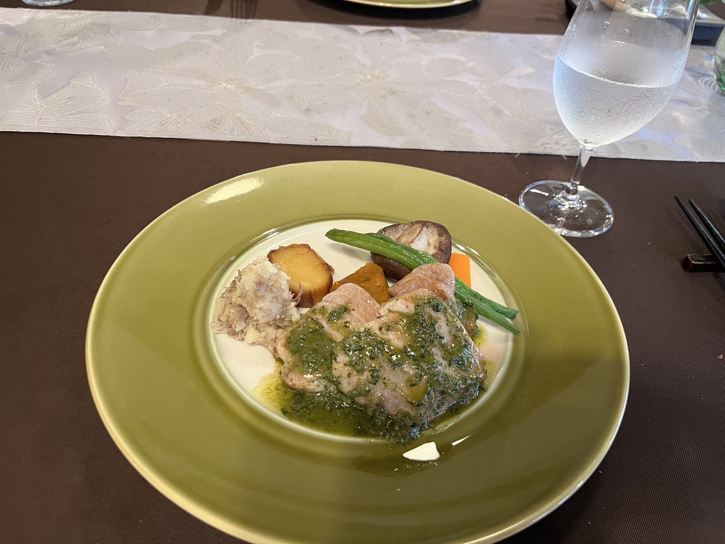 Главные блюда варьируются от филе премиальной говядины синсю вагю, до рыбы с соусами, сезонных овощей и элегантных десертов. Подача эстетичная и юморная с сочетанием японского минимализма и французской техники.