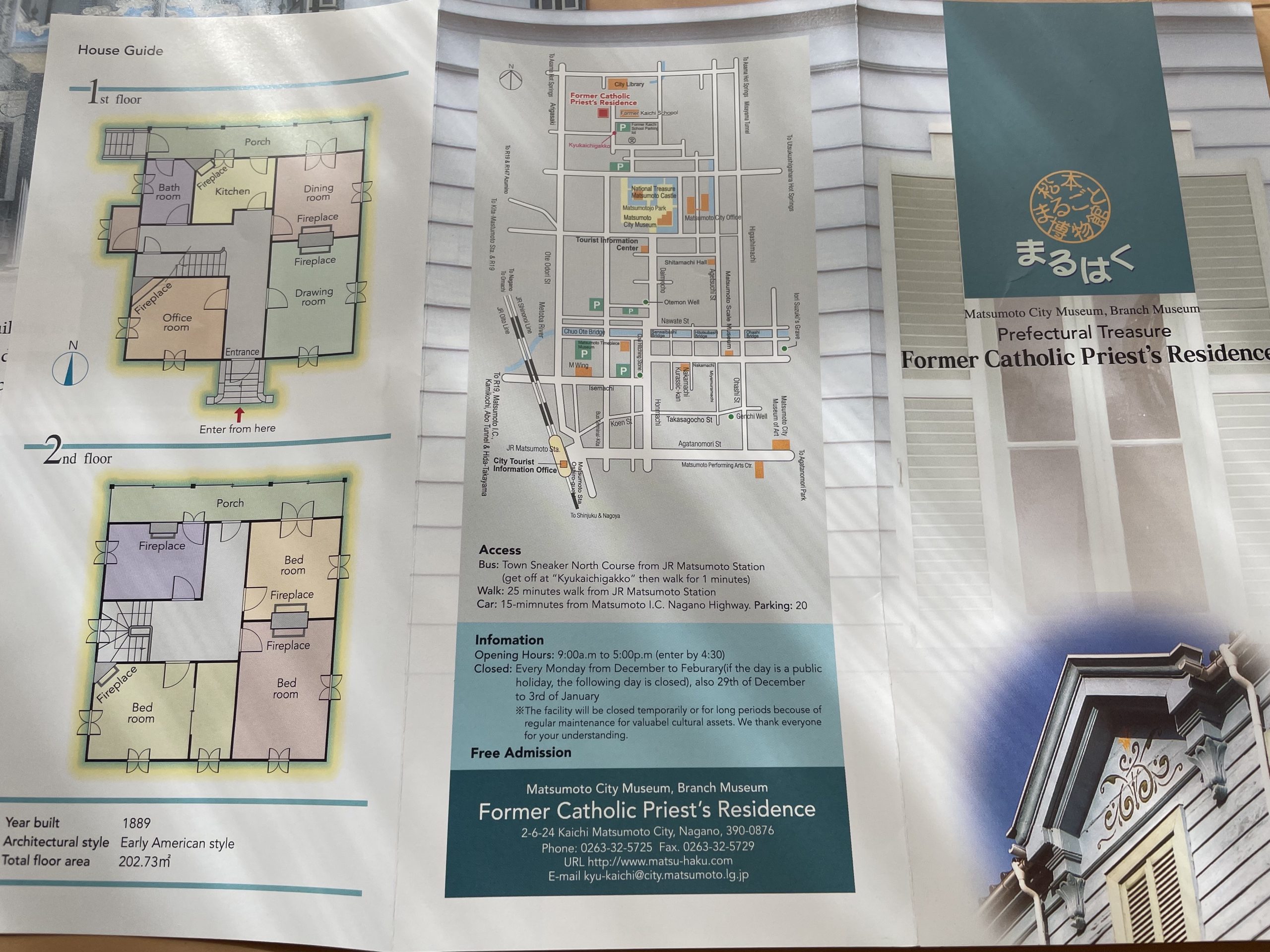 Резиденция находится прямо рядом со зданием бывшей школы Каити, в пешей доступности от замка Мацумото — это удобно комбинировать одну прогулку, чтобы увидеть несколько исторических мест.