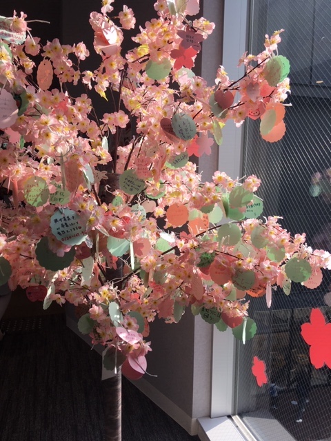 Вы знаете, что когда-то новый год в Японии наступал именно с цветением сакуры? Со временем страна перешла на общепринятый и так хорошо знакомый нам календарь, но учебный год так и берет свое начало в апреле. Поэтому по всей стране в первую неделю апреля школы распахивают свои двери для первоклашек и даже вступительная церемония в детский сад проводится тоже в апреле. В предверии сезона цветения сакуры жители Мацумото стараются приблизить этот момент как могут — украшают жилища и магазины хоть и пластмассовой, но сакурой. В торговых центрах тематические витрины — начиная от вина с цветками сакуры внутри бутылки и заканчивая косметикой с ароматом сакуры. В этом году в ТЦ EAON mall установили несколько бумажных деревьев сакуры , на которые можно привязать записку с самым заветным желанием.