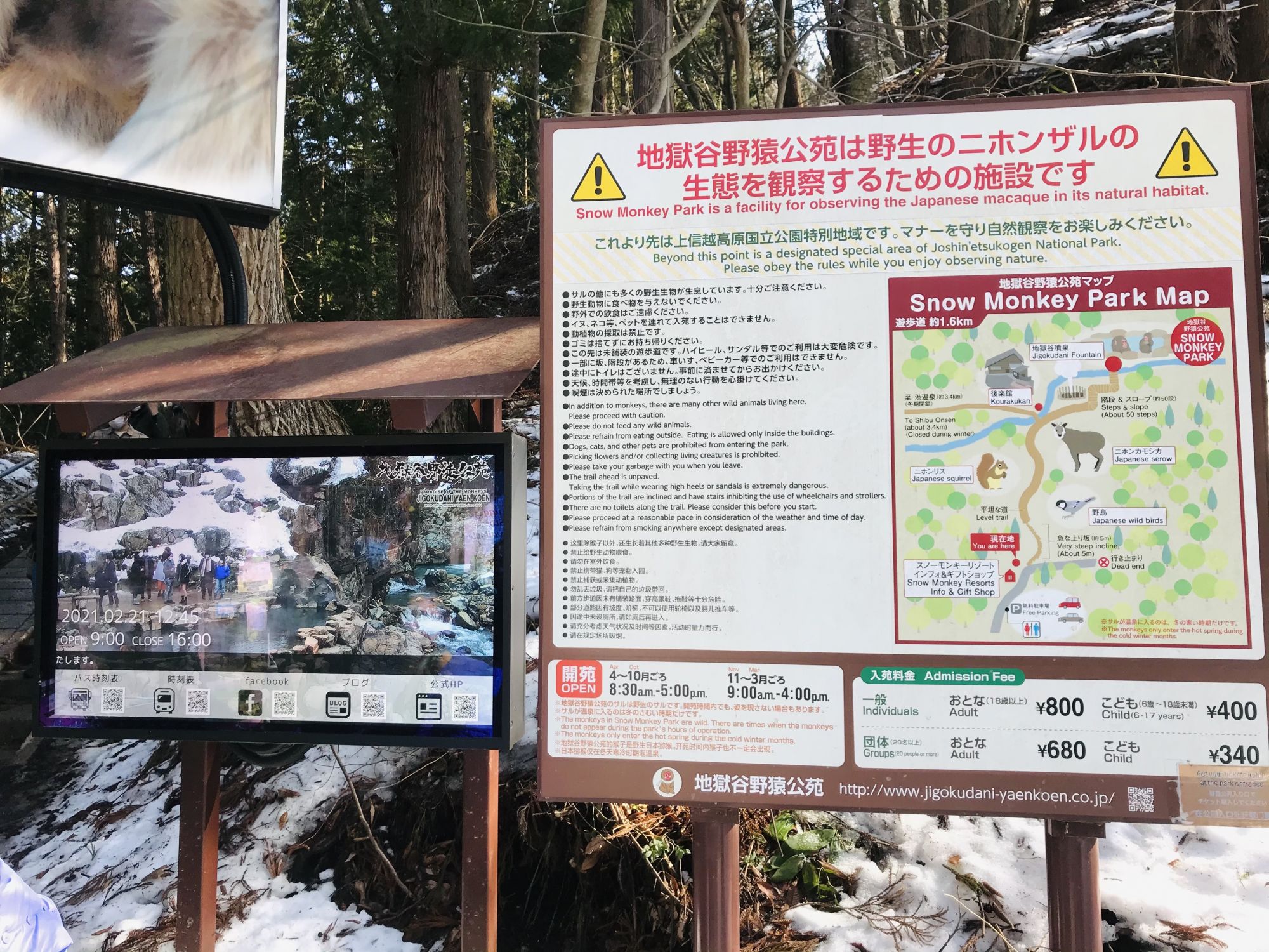 Благодаря удобному месторасположению города, из Мацумото можно легко добраться практически до всех близлежащих достопримечательностей.  В последнюю зимнюю неделю мы решили отправиться навестить известных на весь мир японских макак, купающихся в термальных источниках.  Поездка на машине заняла примерно полтора часа, но если Вы предпочитаете общественный транспорт, то сюда можно добраться на автобусе от вокзала Нагано (поездка займет сколо 40минут) предварительно воспользовавшись поездом Мацумото — Нагано ( приблизительно час в пути)