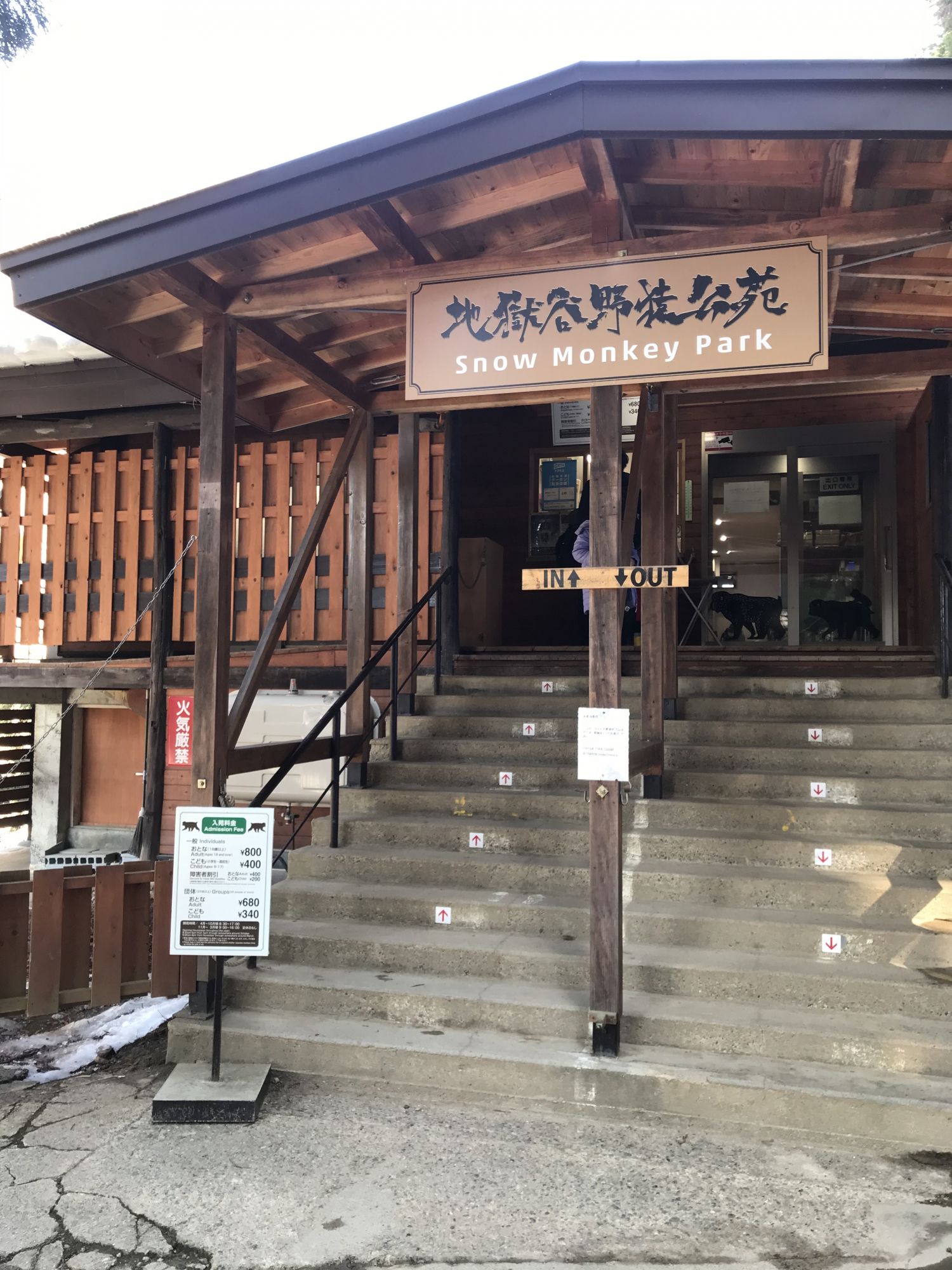В конце тропинки открывается потрясающий вид на саму долину. Далее небольшая, но крутая лестница ведущая к платной части парка и билетным кассам. Стоимость входного билета для взрослого составляет 800 иен, для ребенка — 400 иен.