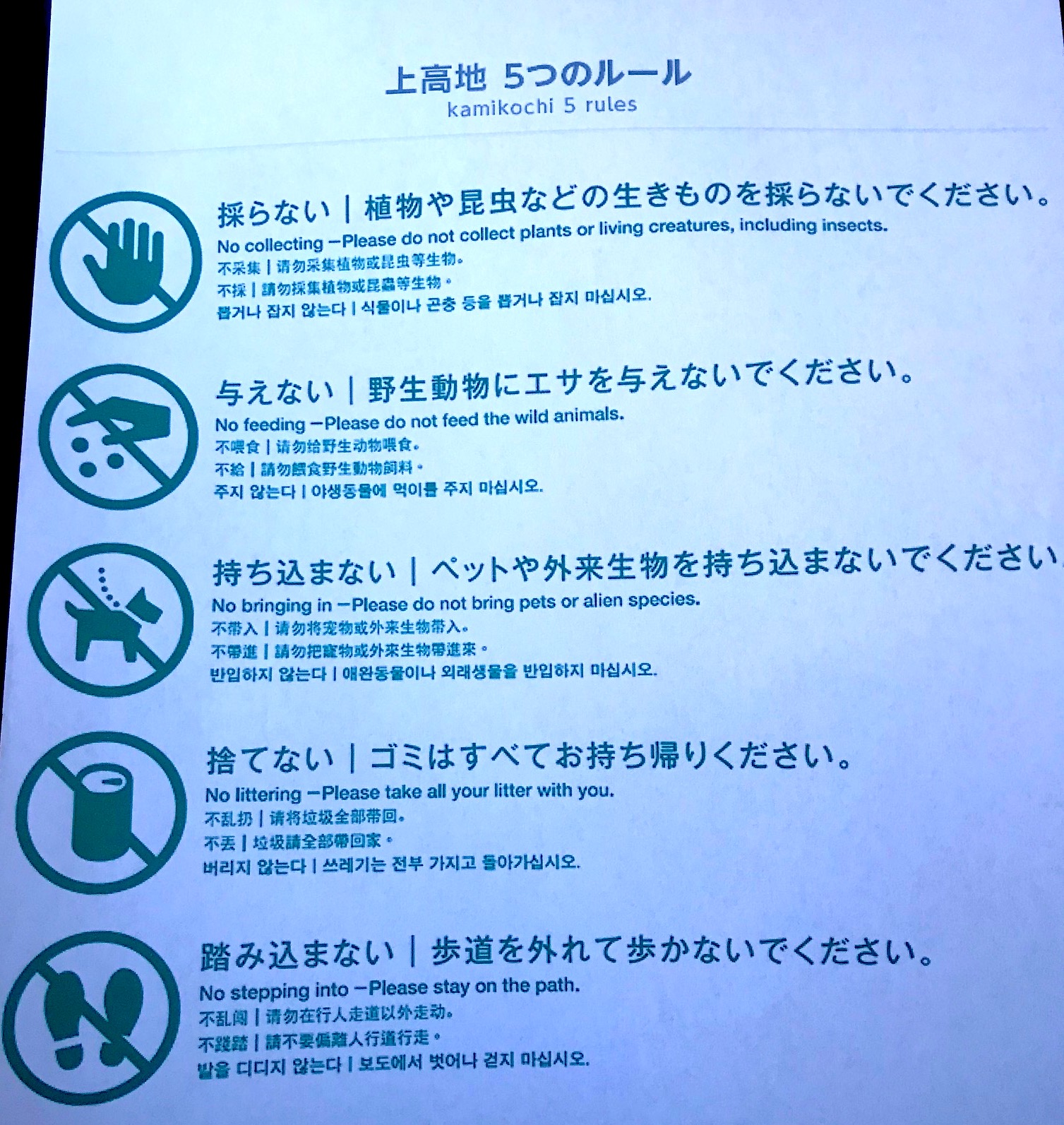 Если Вы планируете посетить Камикоти, не забудьте захватить дождевик и теплую одежду — погода в горах плохо предсказуема и изменчива.  И еще — положите в карман несколько монеток по 100 иен — большинство туалетов на территории заповедника платные.