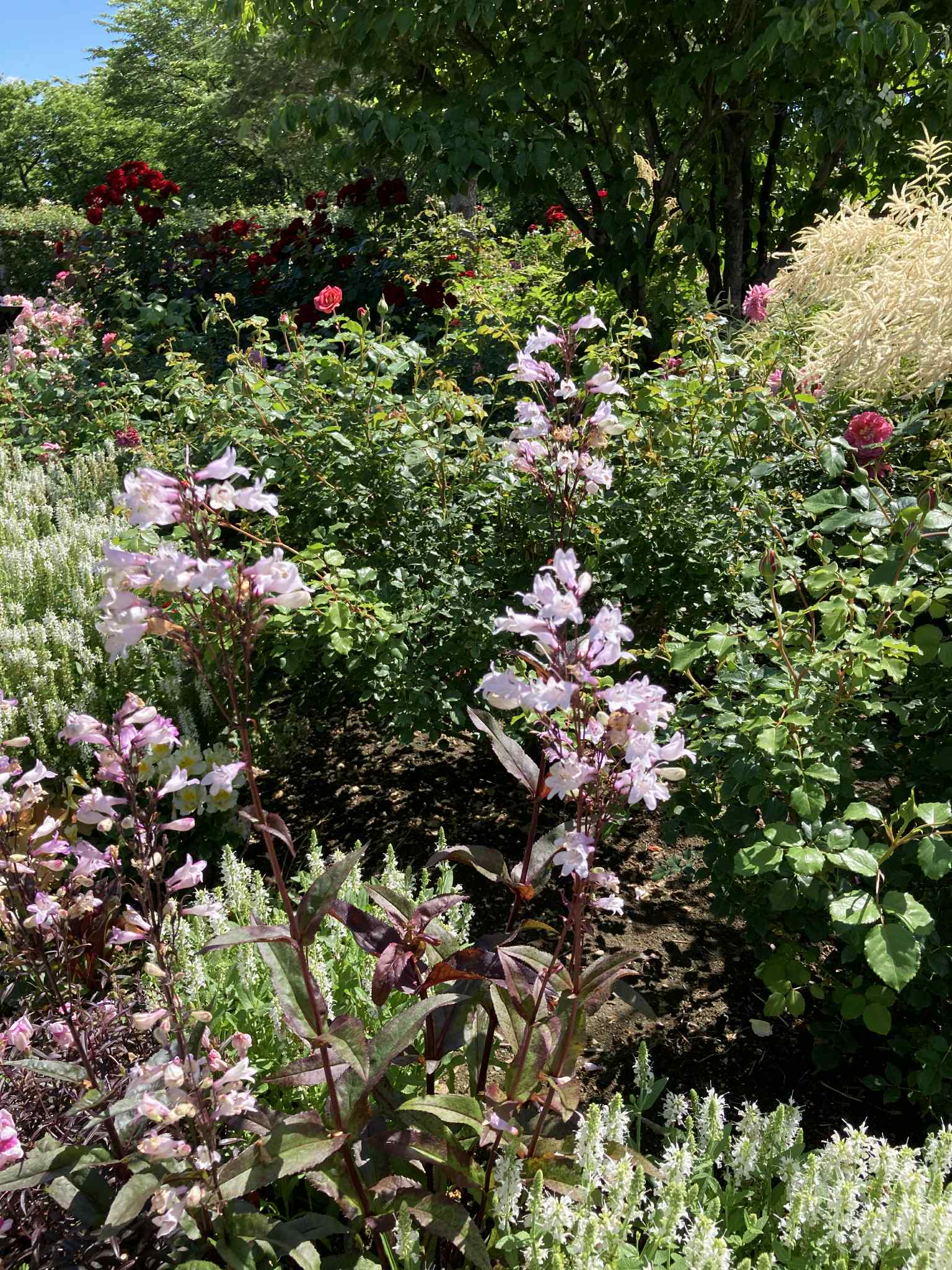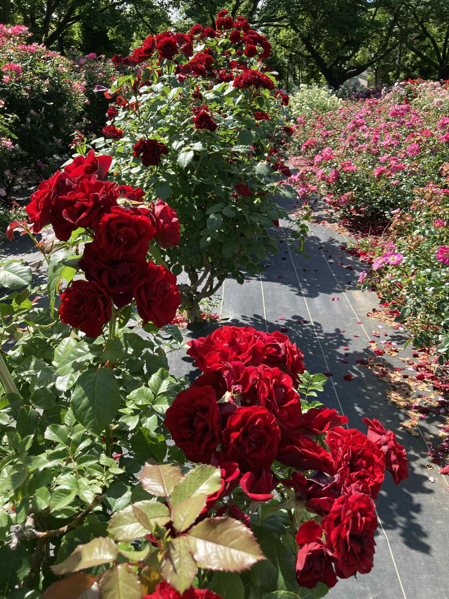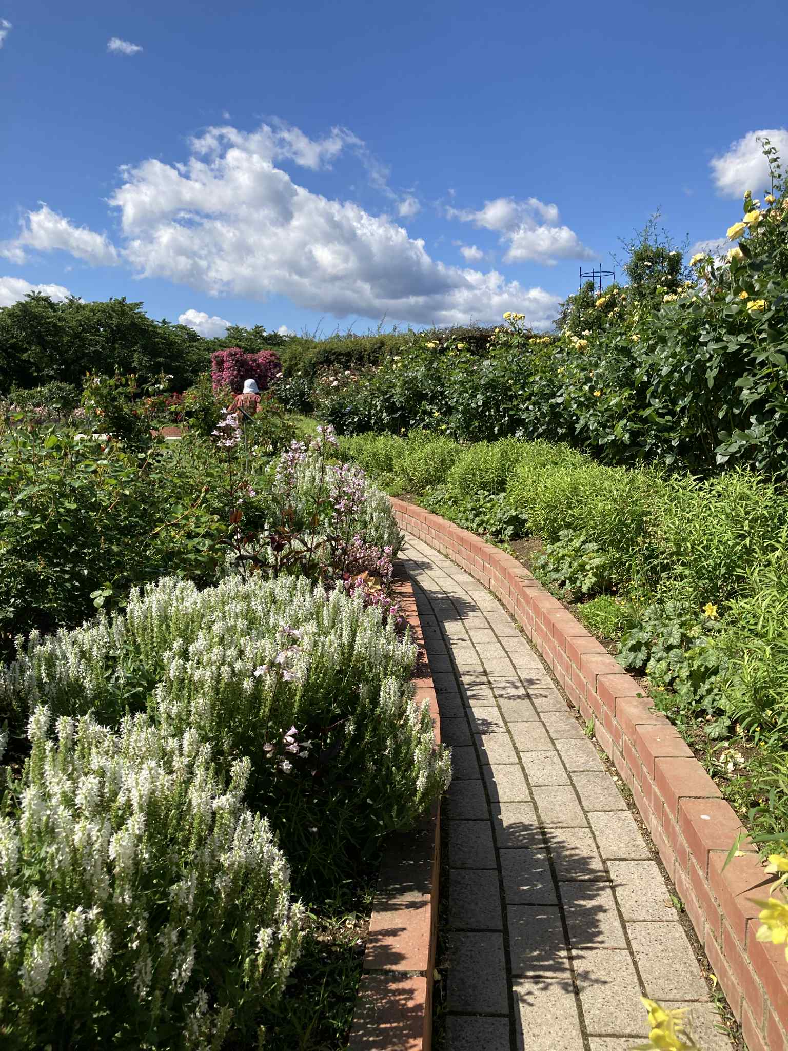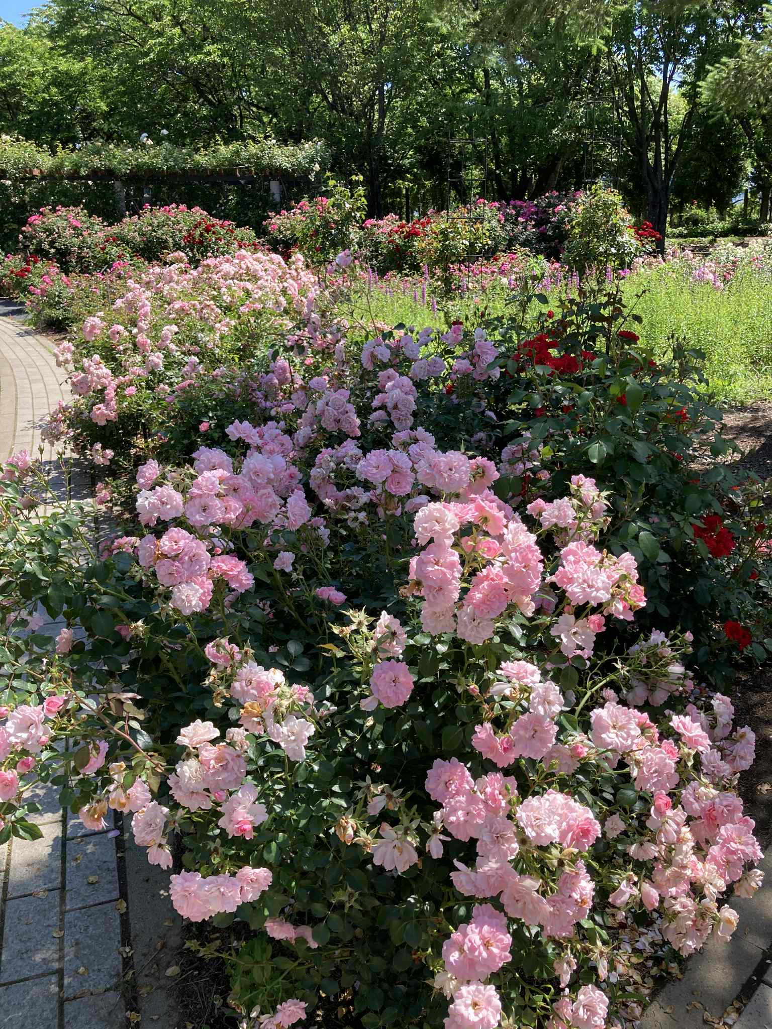 Сад роз занимает зону «Flower Promenade» — около 100 видов и 3 000 кустов. Огромная территория позволяет спокойно гулять, наслаждаясь ароматами и цветами. По дорожкам между цветниками установлены таблички с названиями сортов . В центре — круглый цветник, вокруг — газоны и скамейки для отдыхa.