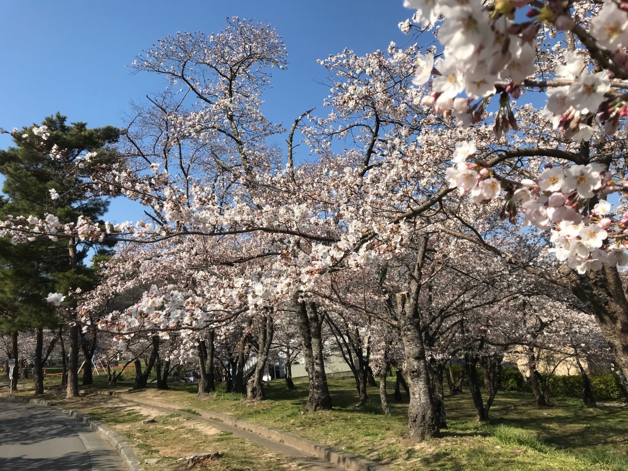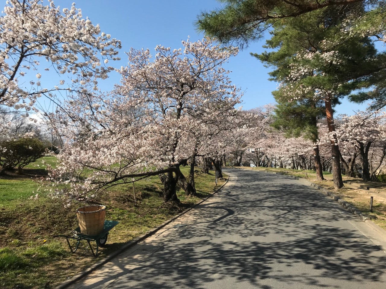Один из самых немноголюдных парков в Мацумото — парк Джояма, во время пандемии нового короновируса практически пустует. Лишь живущие по соседству семьи выходят прогуляться под цветущей сакурой.