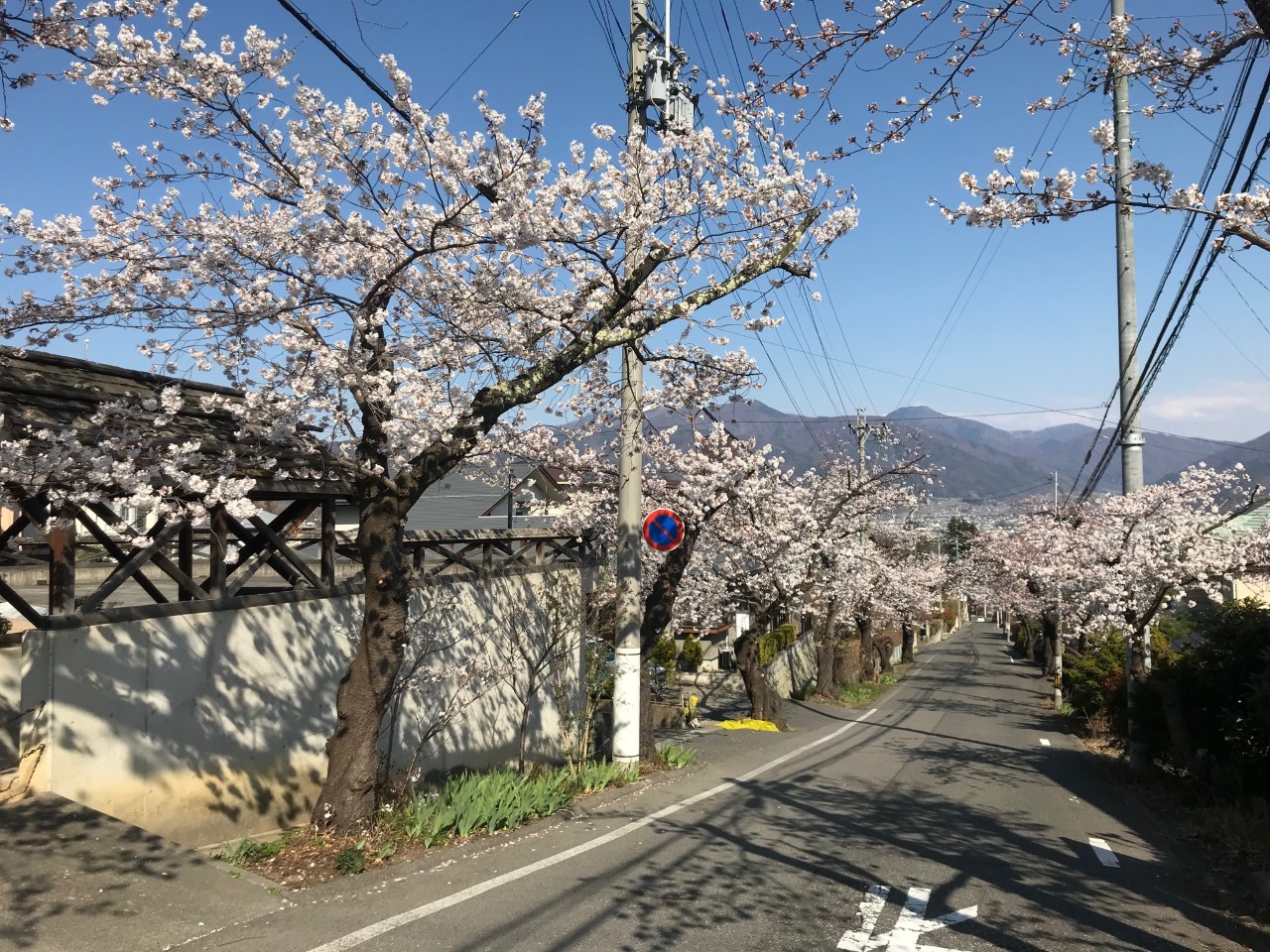 Парк находится на возвышенности, здесь сакура обычно зацветает чуть позже, чем в саду замка Мацумото. Не только сам парк Джояма (城山) , но и дорога к нему сейчас окрашена в нежно розовые тона.