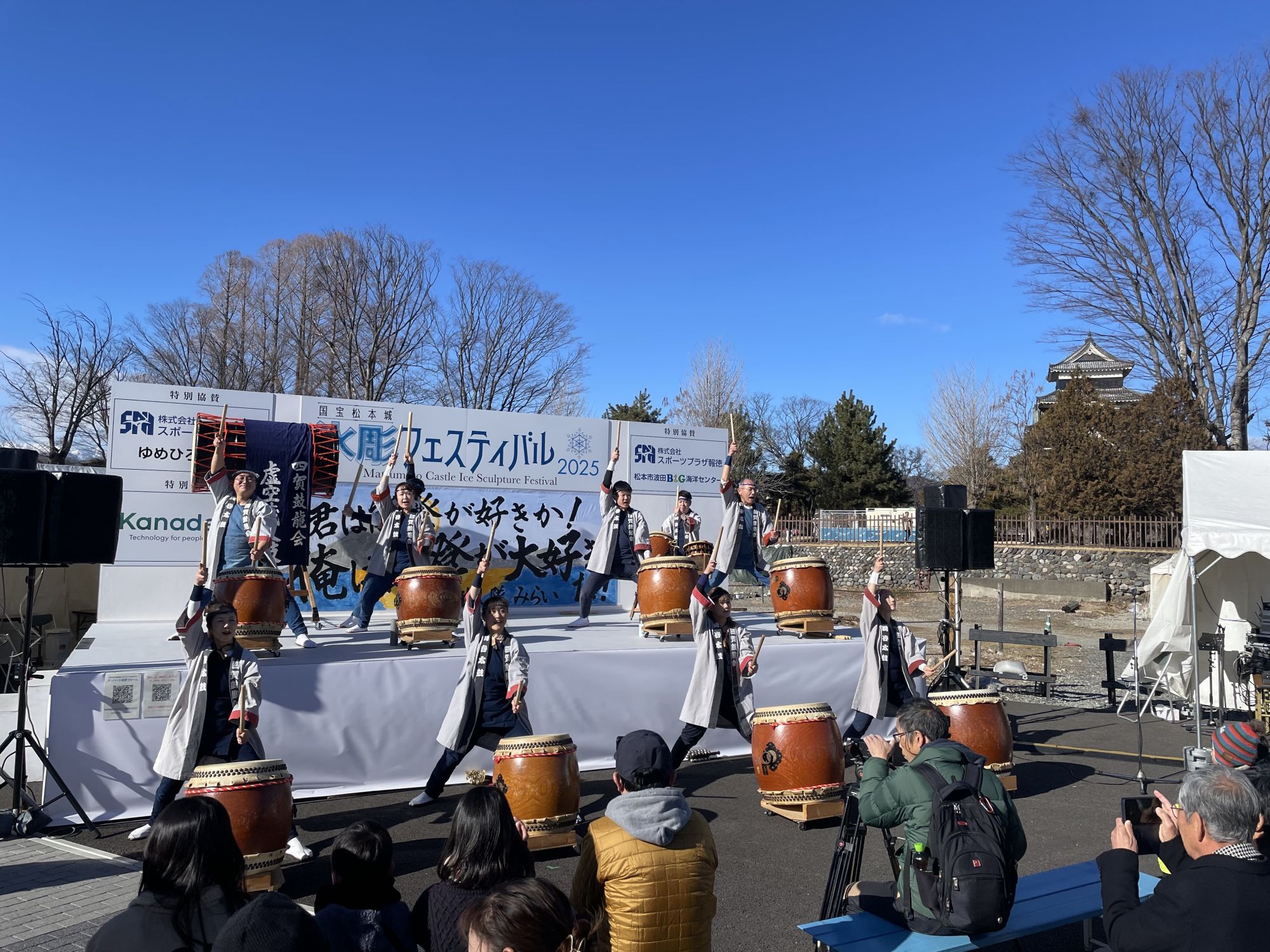 Кроме того, на территории возле замка развернулся настоящий праздник: посетители могут попробовать уличную еду, узнать больше об участниках конкурса в информационных палатках и насладиться выступлениями барабанщиков на сцене. Атмосфера оживления и творчества делает фестиваль незабываемым событием зимнего сезона в Мацумото.