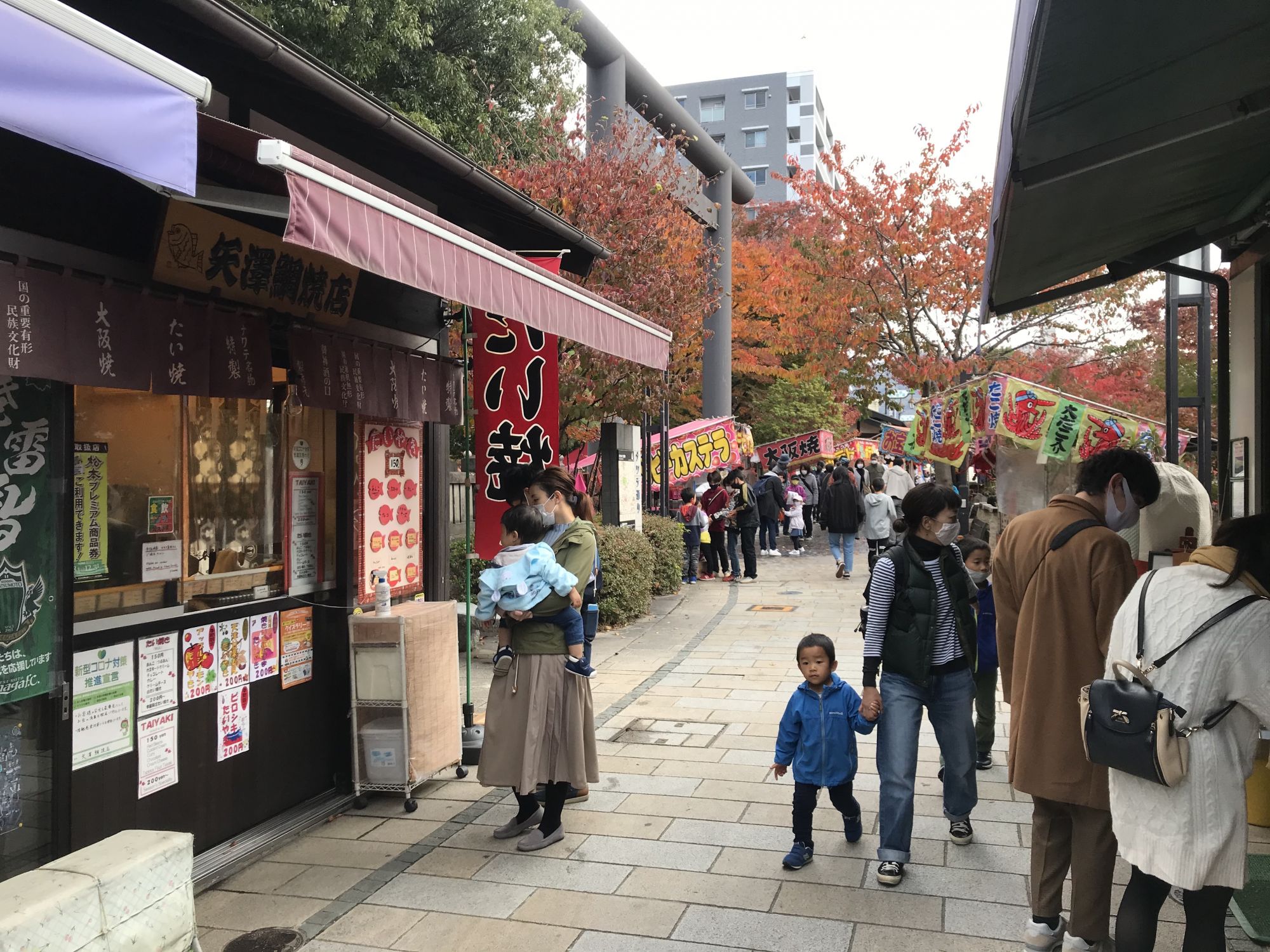 На улице Навате , как и положено в праздничные день, работали палатки с уличной едой и традиционными сладостями — яблоки в карамели на полочках, сладкая вата. Возле полицейского участка проходило выступление барабанщиков. На территории храма Ёхасира  было многолюдно и оживленно.