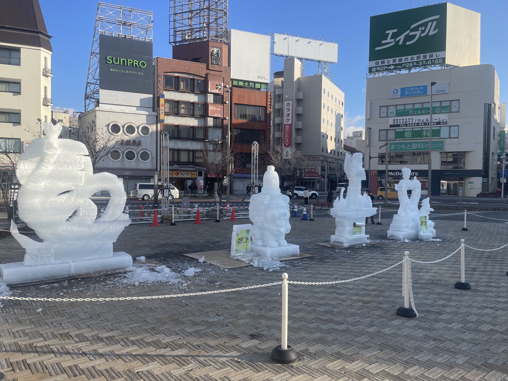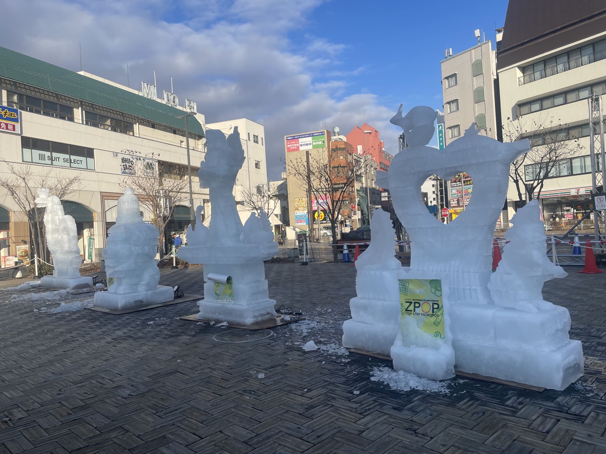 Ежегодный фестиваль ледяных скульптур стартовал в Мацумото, вновь привлекая внимание жителей и гостей города. Работы начались в пятницу вечером на площади возле вокзала, и уже с субботнего утра посетители смогли увидеть несколько впечатляющих композиций.