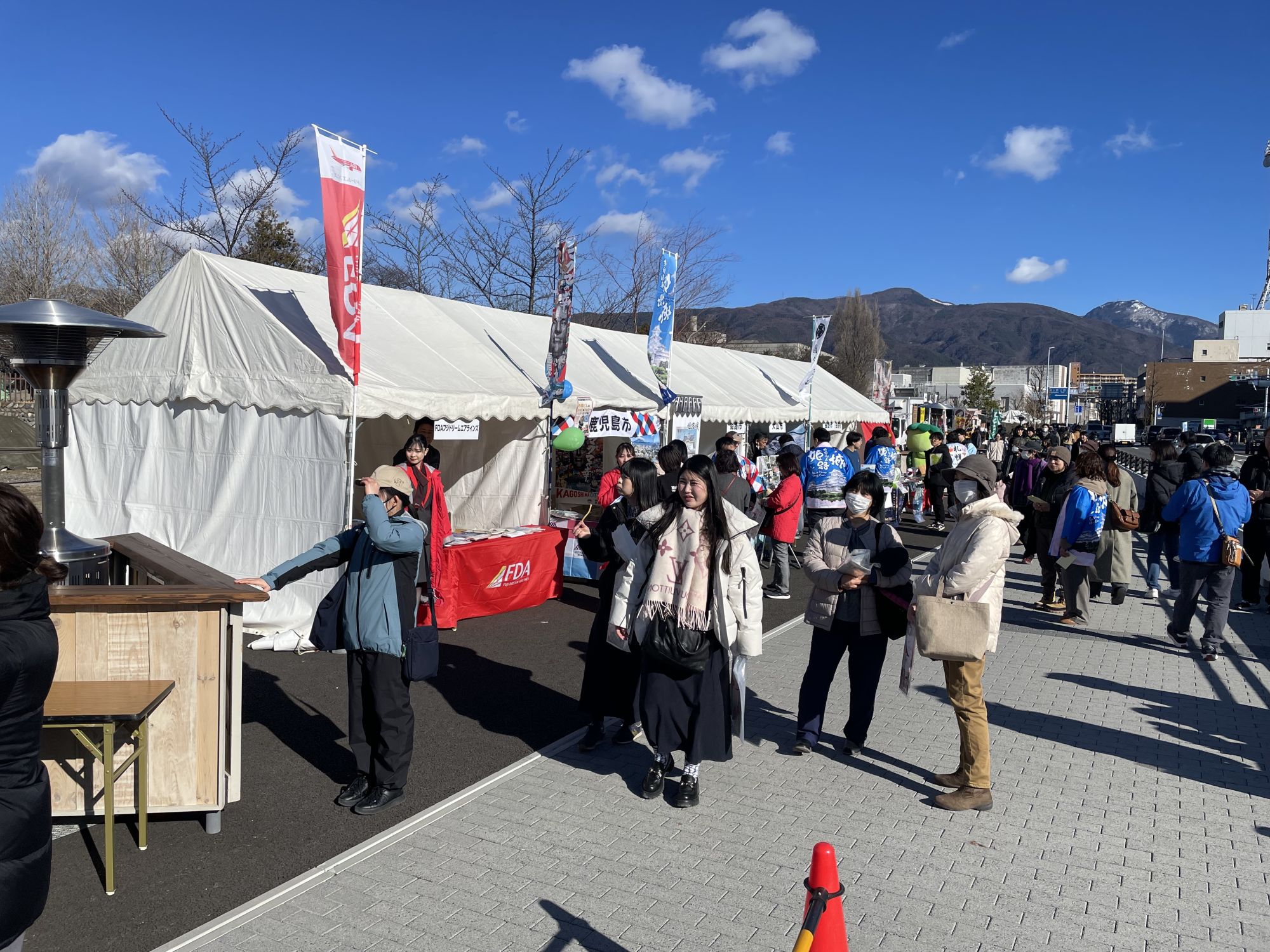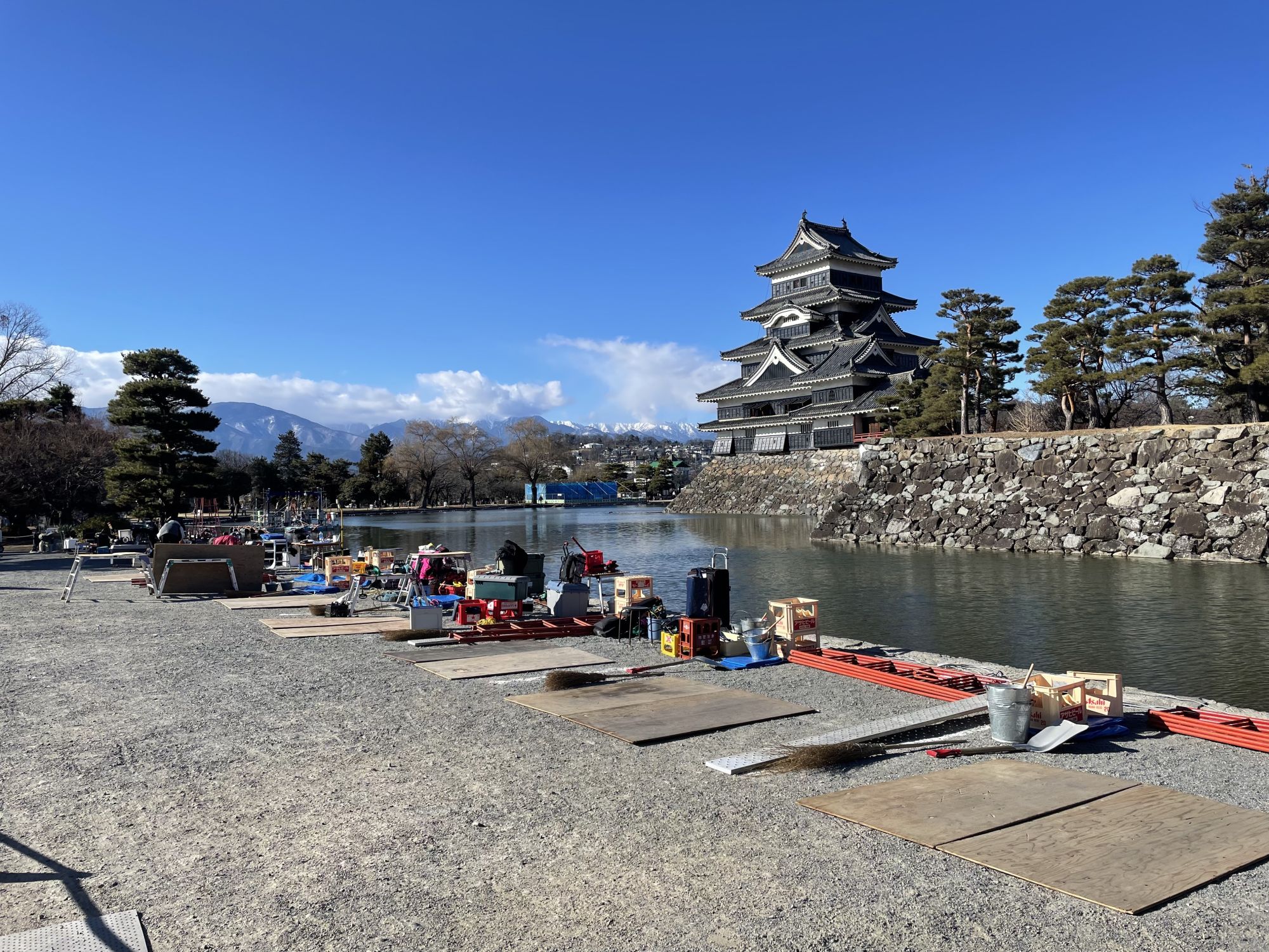 Кроме того, на территории возле замка развернулся настоящий праздник: посетители могут попробовать уличную еду, узнать больше об участниках конкурса в информационных палатках и насладиться выступлениями барабанщиков на сцене. Атмосфера оживления и творчества делает фестиваль незабываемым событием зимнего сезона в Мацумото.