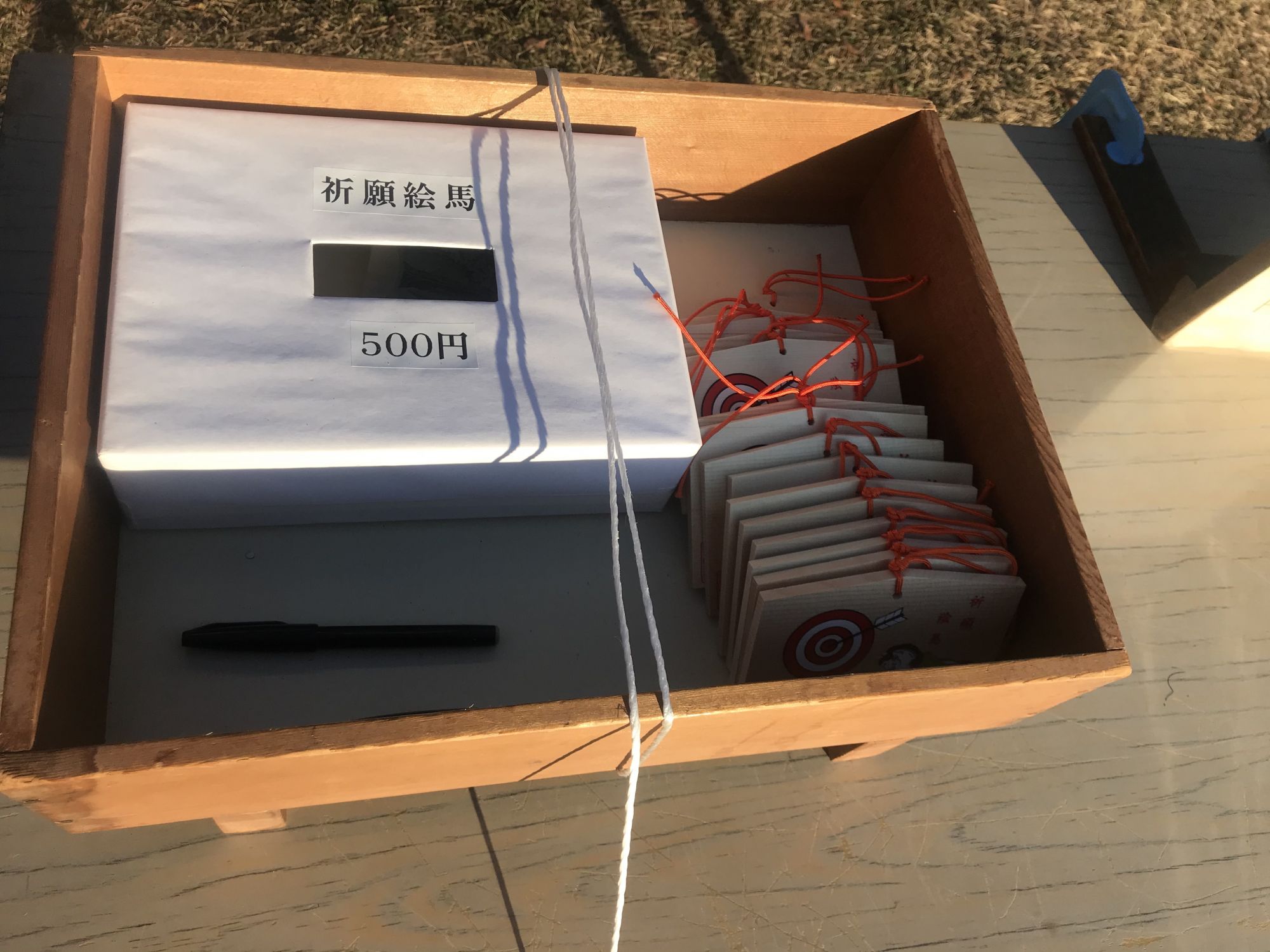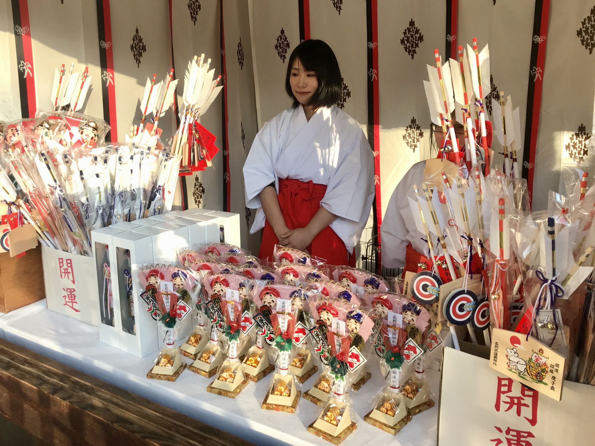 В дни Хацумоуде в храм можно принести прошлогодние обереги , а так же дарума — шарообразное божество, которому дорисовывают глаз после исполнения загаданного желания. Отработавшие своё сжигают здесь же, в специально вырытой яме под молитвы служителей храма.