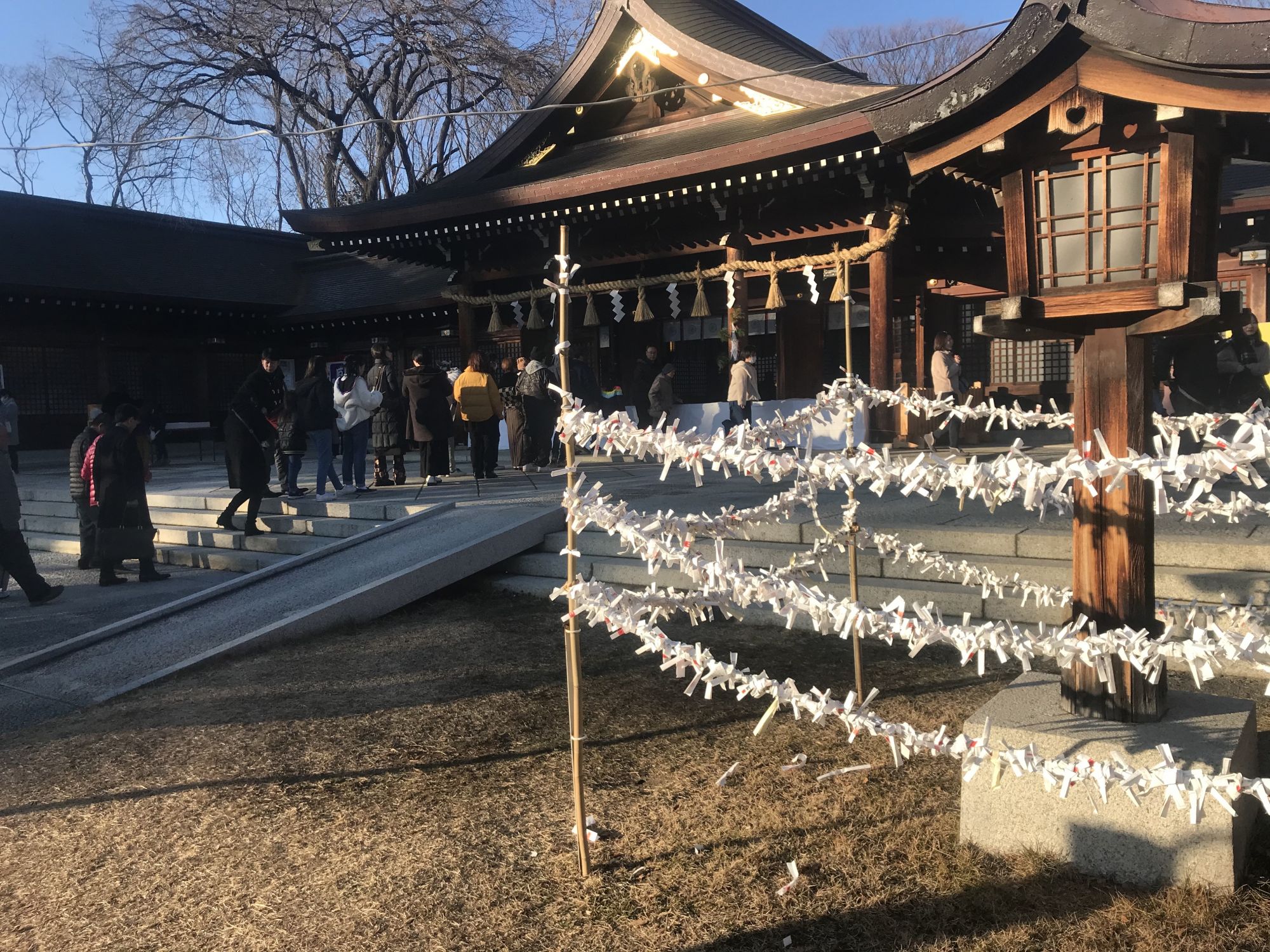 В первые дни января японцы приходят в храм, что бы помолится о благополучии в новом году, купить оберег и вытянуть предсказание.