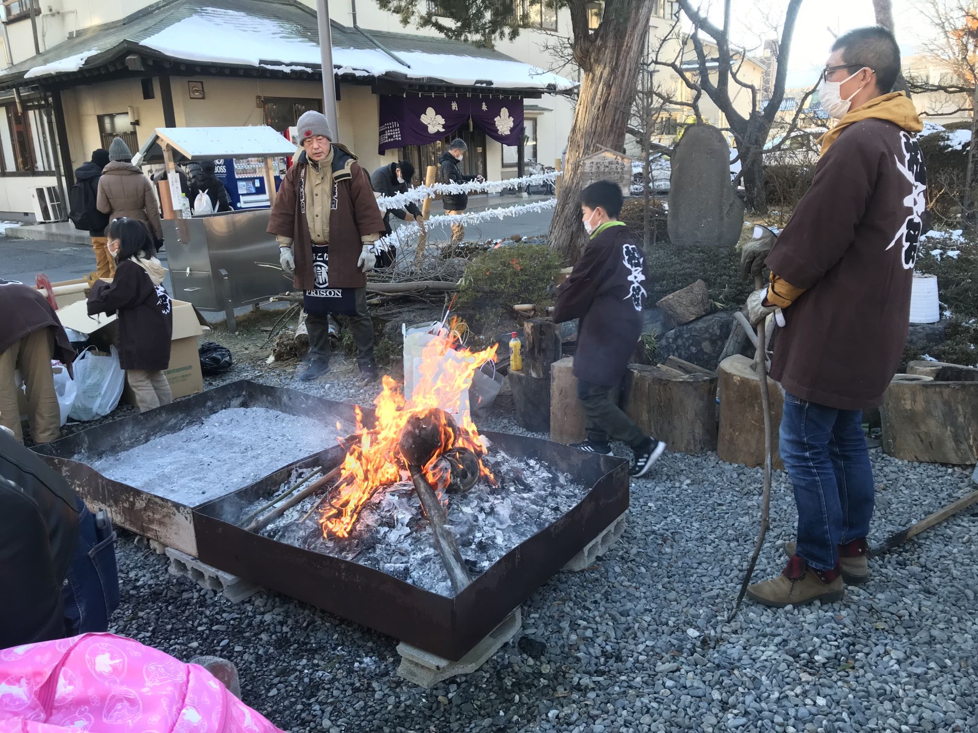 Прошлогодние украшения, а так же дарума, исполнивших желания, сжигают здесь же.