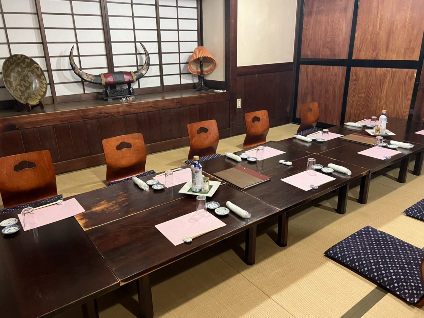 1階4つの間 長い階段を昇ると、2階には、5つの襖で区切られたお部屋があります。襖を取り除くと最大130名まで入れる大広間になります。
