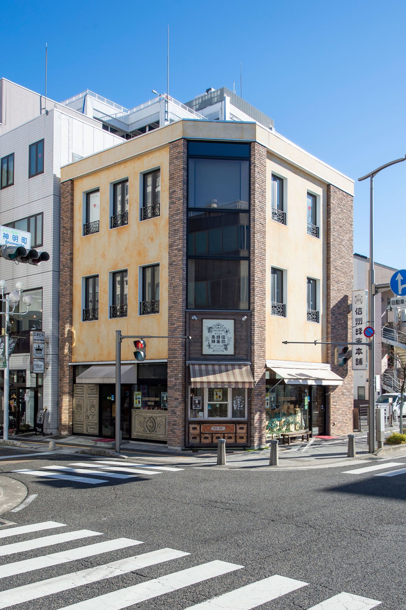 公園通りの角にあるスタイリッシュな外観が目を惹く「はちみつ専門店 信州蜂蜜本舗」
