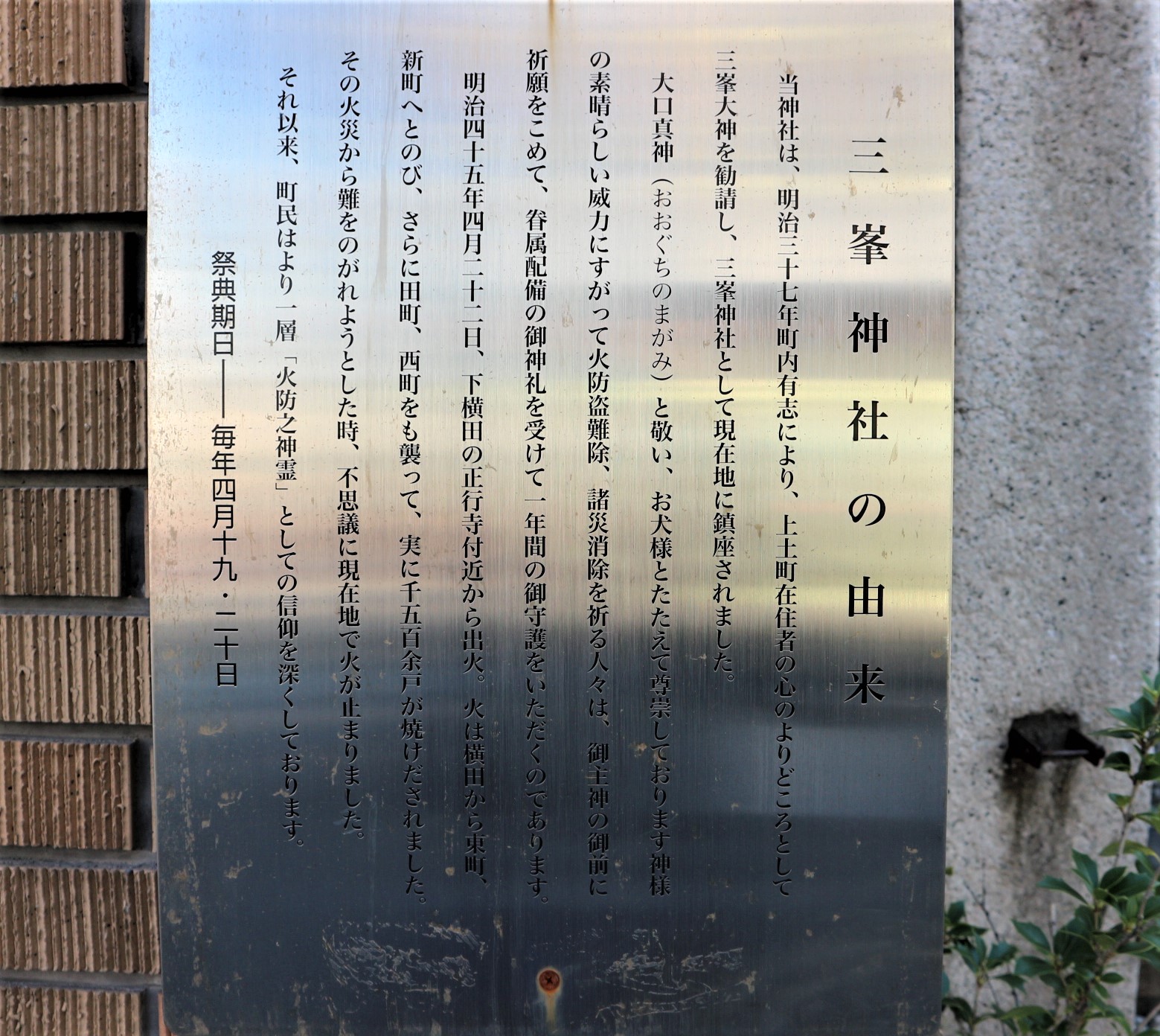 備えられた案内看板を読むと明治37年に町内の有志により上土在住者の心の拠り所として三峯大神を勧請し、三峯神社として現在地に鎮座されました。