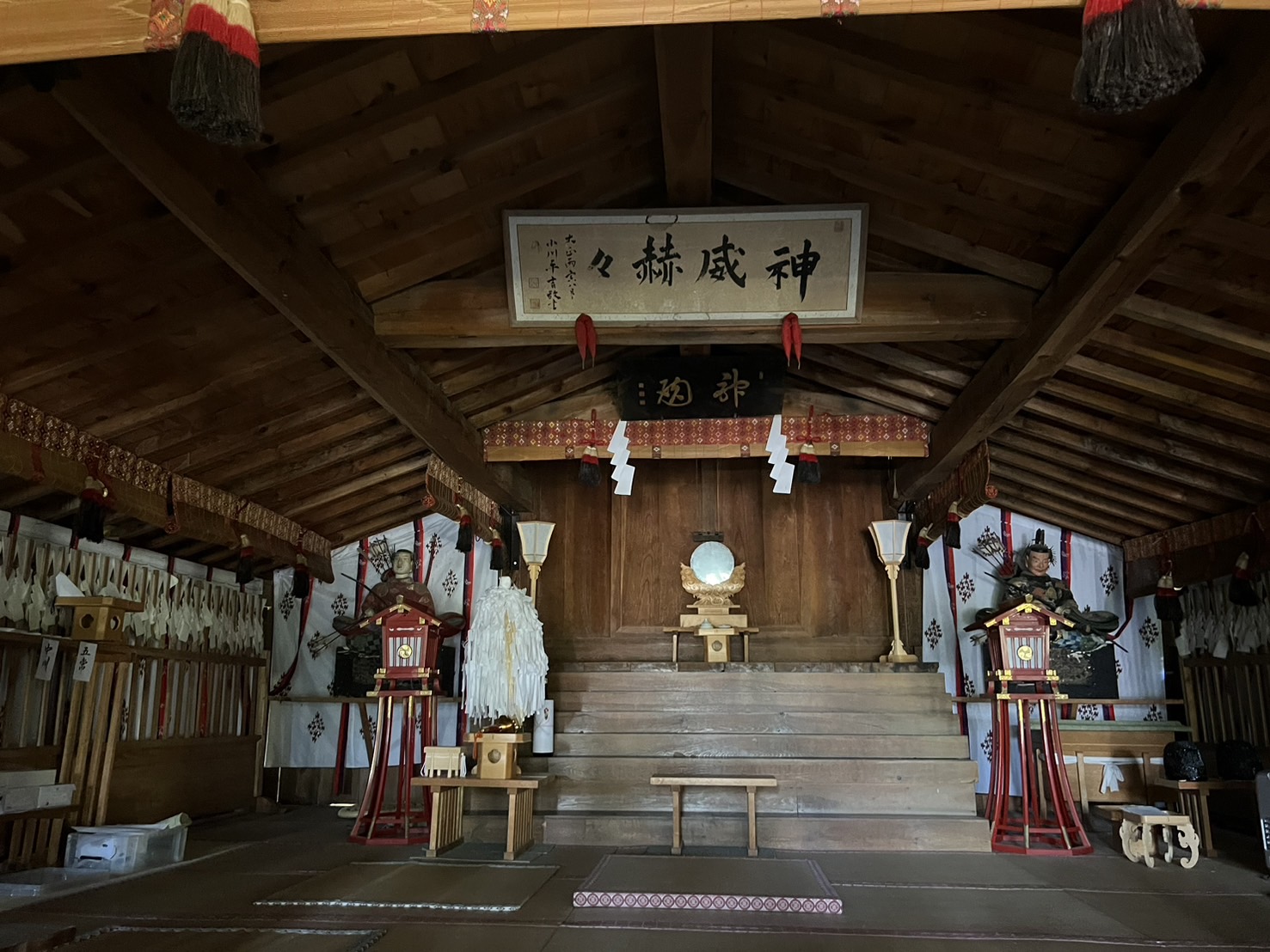 会田御厨の鎮守として白鳳年間(7世紀後半)に勧請されたと伝わる社で、現在残る神明造りの本殿は宝暦6年(1756年)の建立です。
