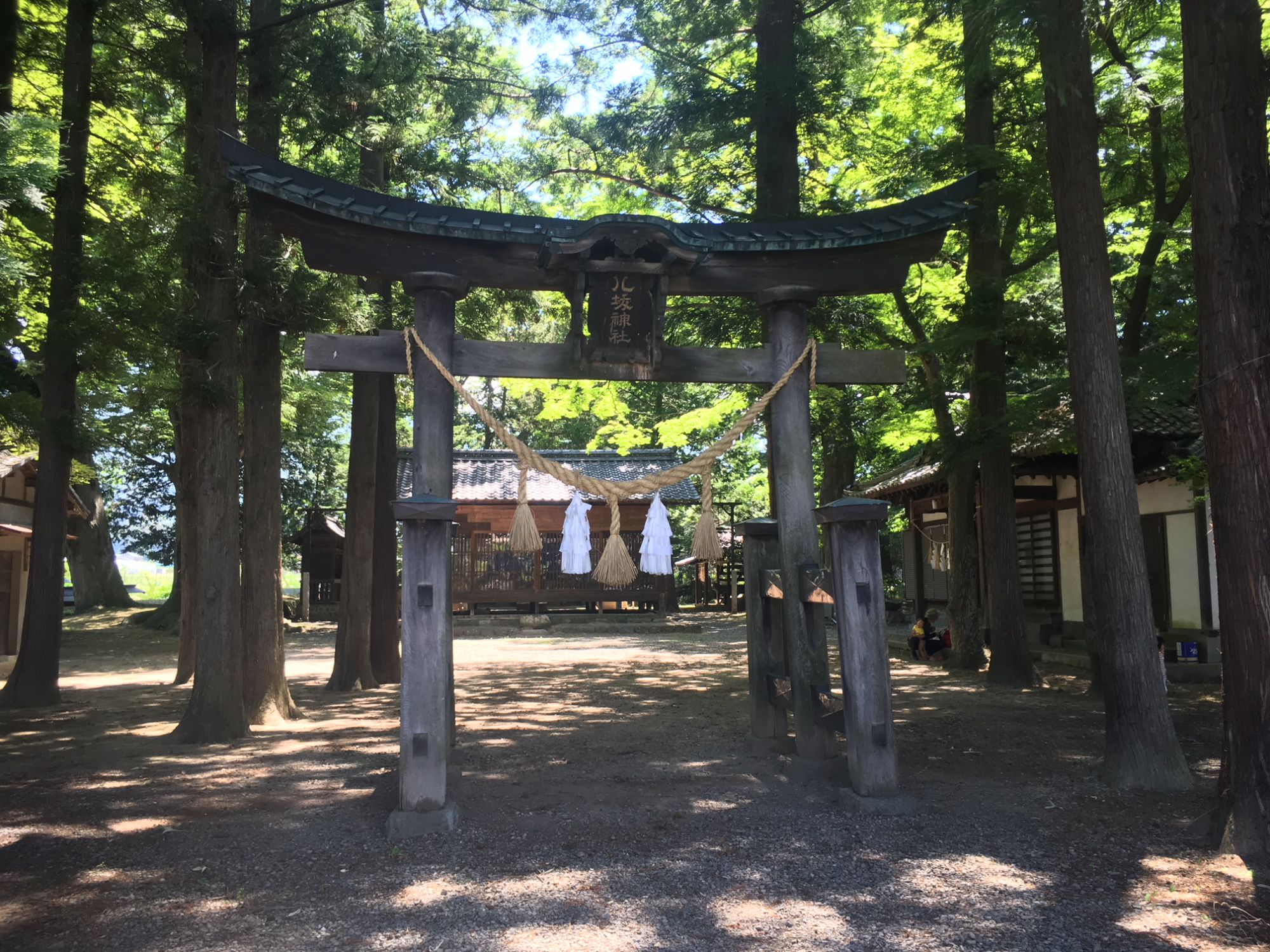 松本平でも数少ない貴重な萱葺きの本殿 桁行1,657mm、梁間2,686mmの木造建物で、砂岩系の自然石切石積の基壇上に土台を入れ、浜縁付き三間社流造の萱葺きで柱は丸柱、軒は二手先重垂木、向拝は大面取角柱、水引虹梁二間重垂木で造られています。