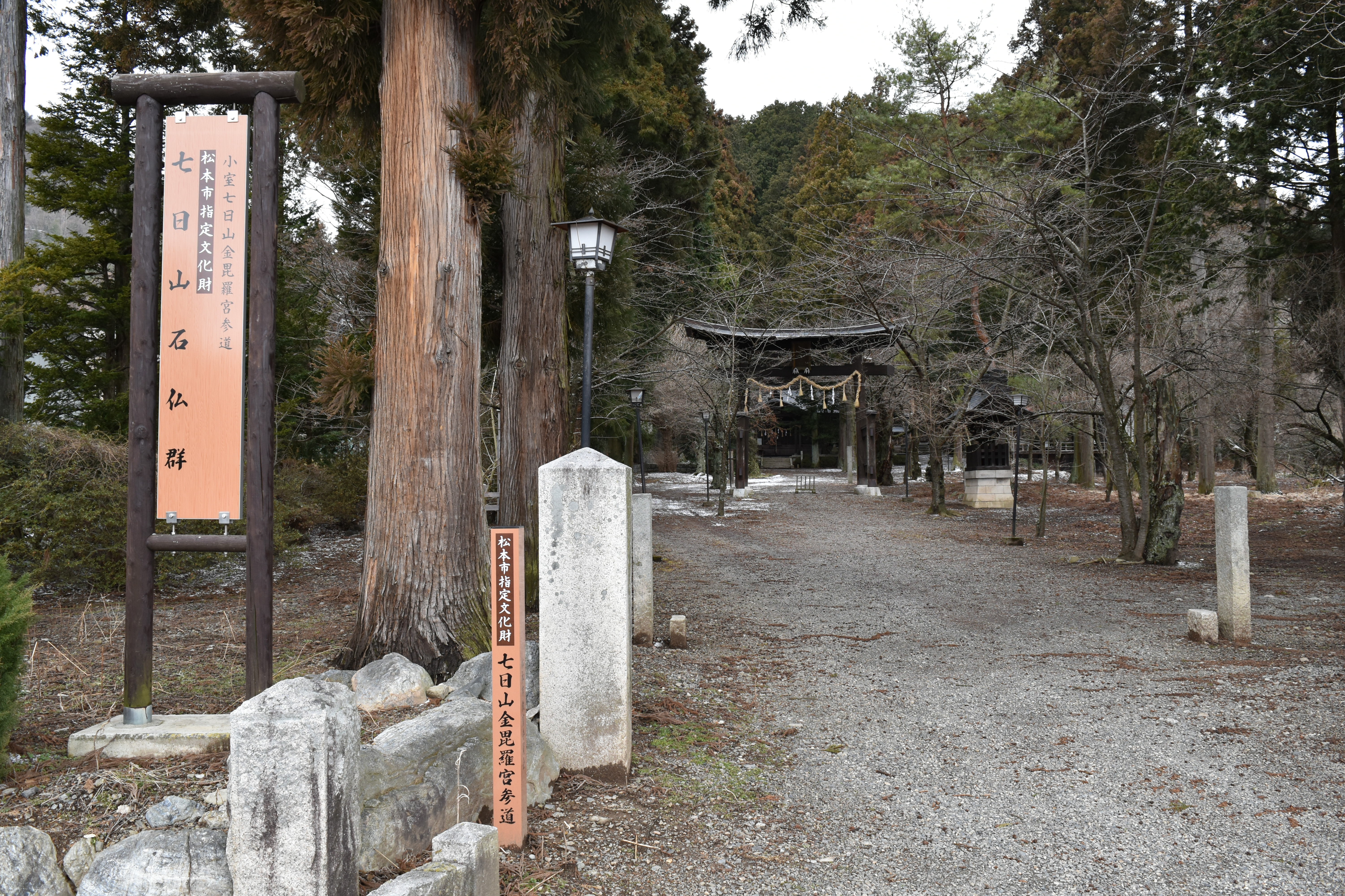 梓川地区でただ一カ所の石仏群は、梓川地区小室の七日山にある金比羅宮の参道にあります。