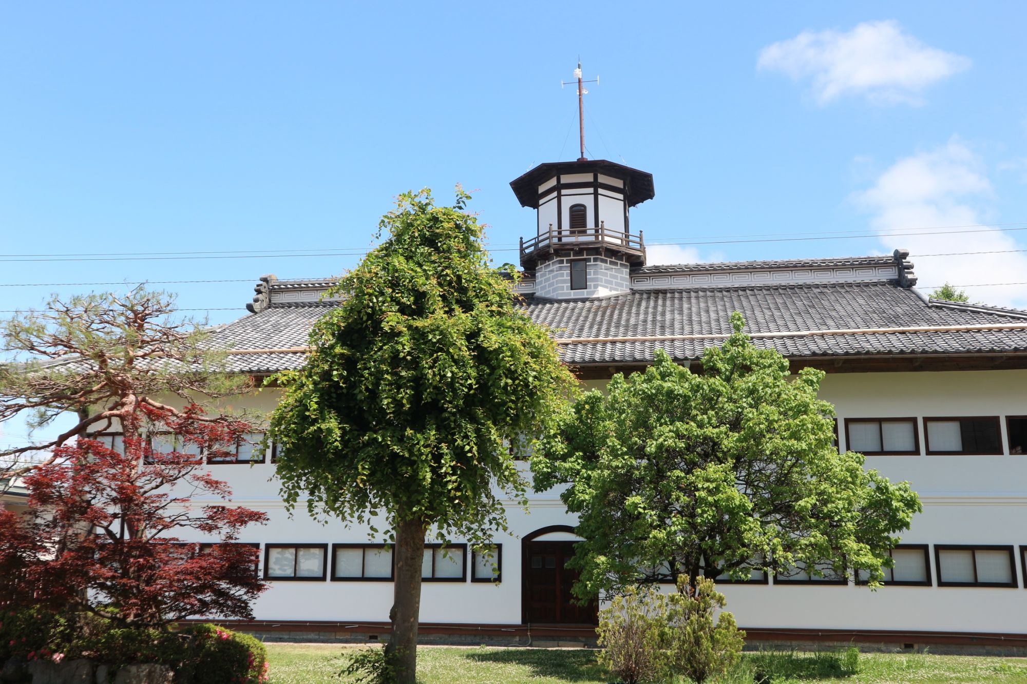 八角塔が印象的なこの建物は、伝統的な日本建築を基調としながら洋風の手法を巧みに組み合わせた学校建築として、長く地域の人々に親しまれてきました。