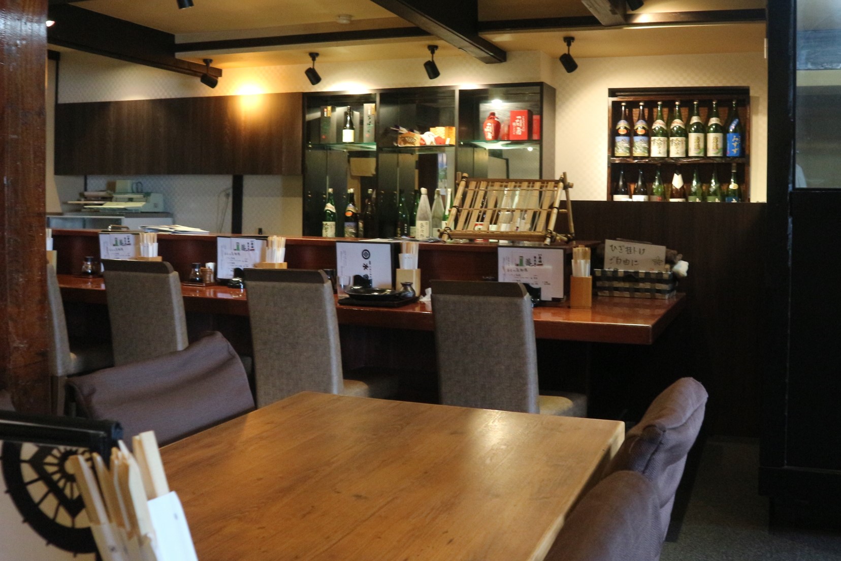 カウンター席、テーブル席、和室、2階には個室もあります。