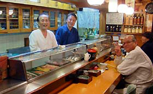 旭鮨は、松本の東、イオンモールの東南の角、交番の向かいにある寿司屋です。創業1976年。 回転寿司チェーンの進出と不景気のために、松本で多くの寿司屋がなくなる中で、このお店は、30年前から地元の人御用達の寿司屋として続いています。 その理由は、味が美味しいだけでなく、回転寿司では味わえないホンモノの日本の寿司文化が味わえることでしょうか。 カウンターごしに板前さん親子と、常連客の交わす軽妙な会話が傑作。 タッチパネルで注文するだけの回転寿司では得られない、地元の情報も聞けます。